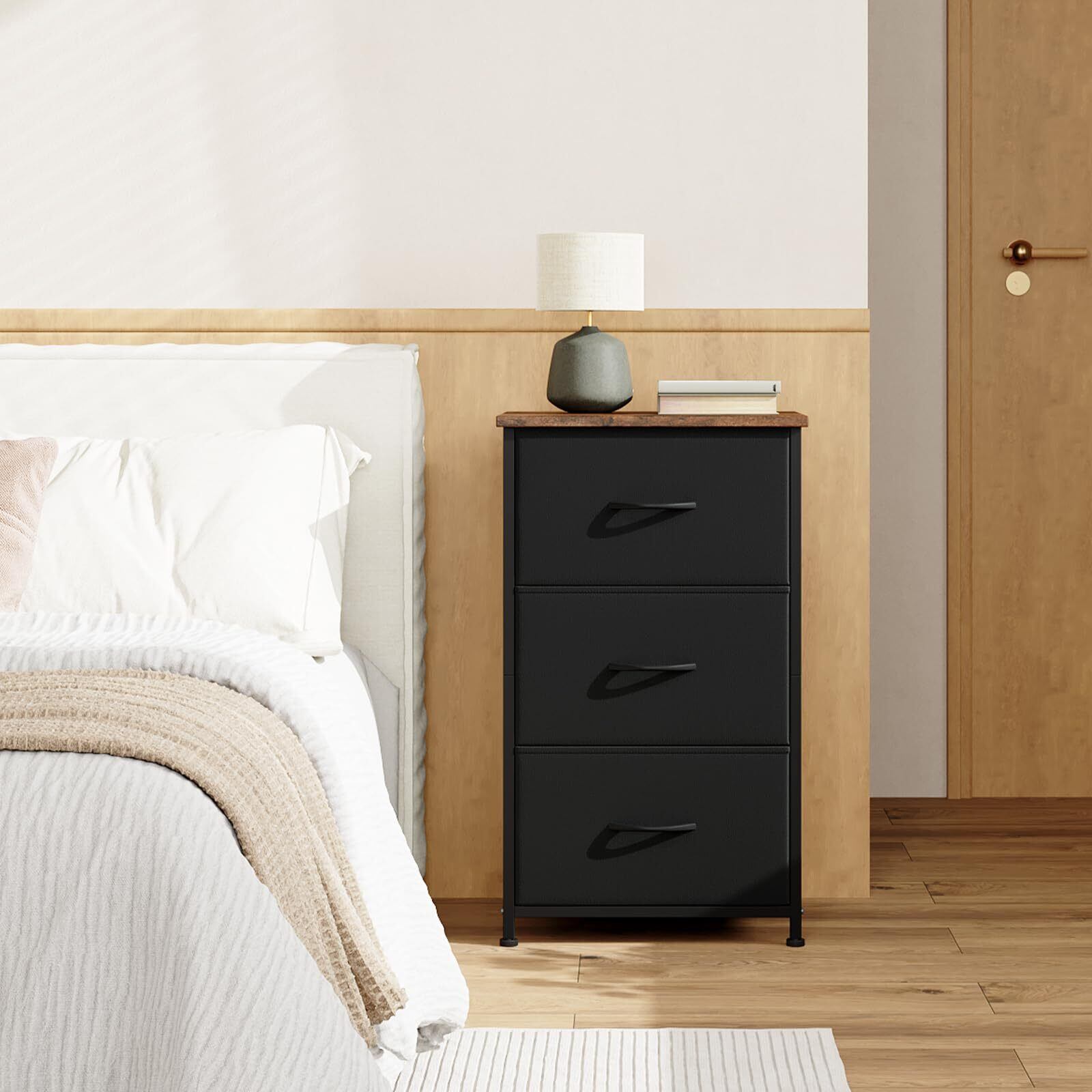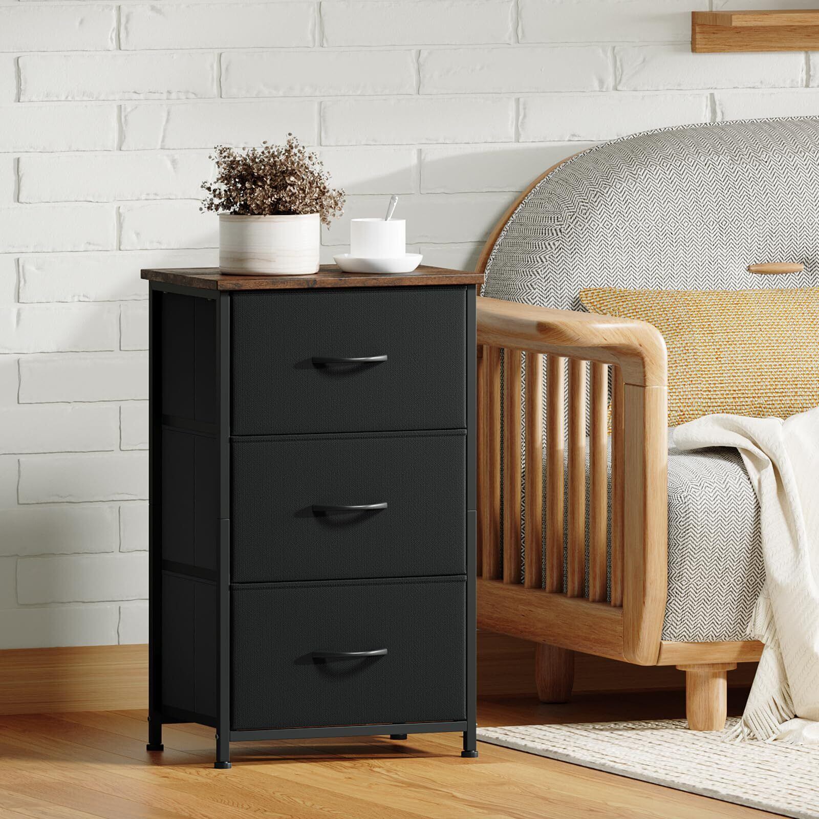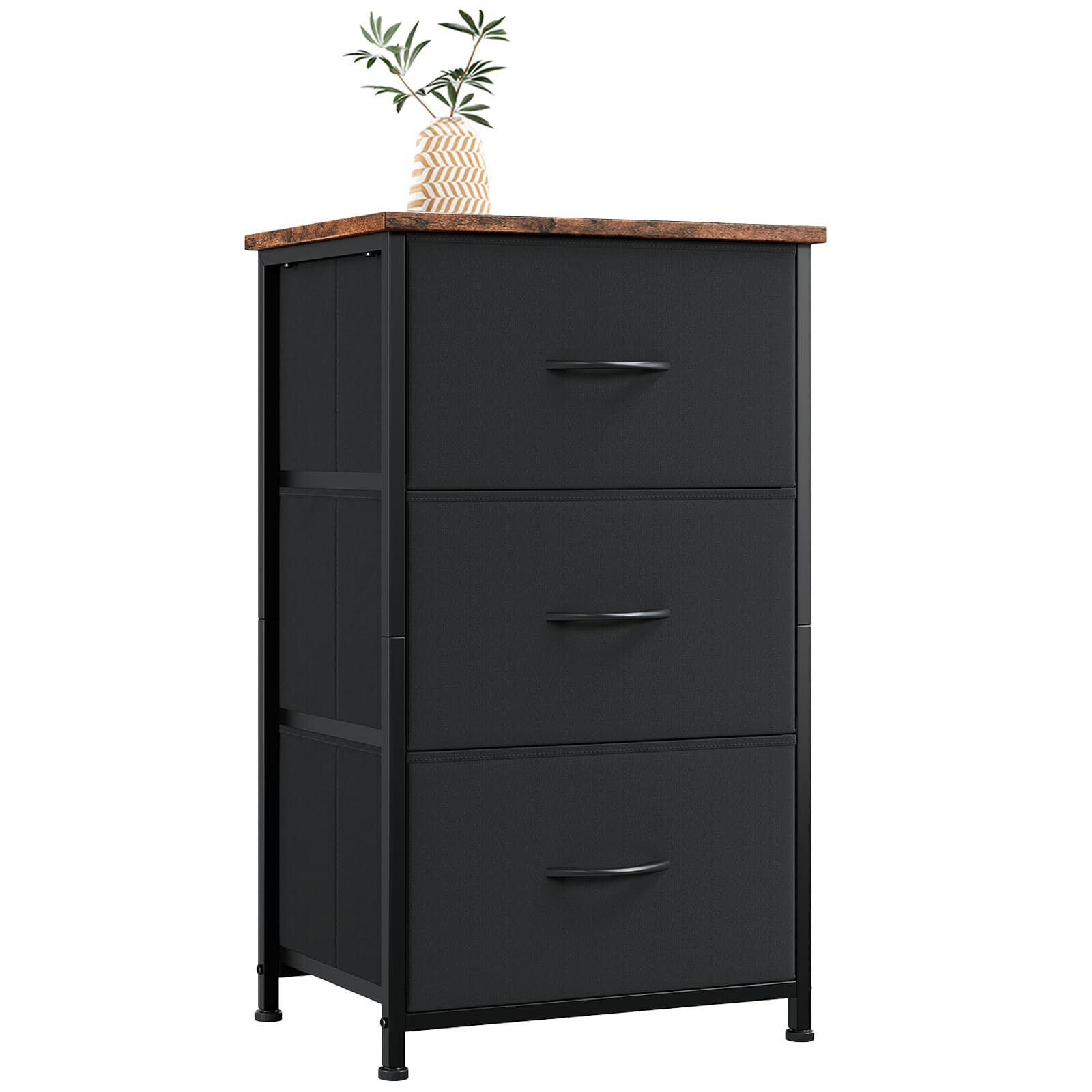 Somdot チェスト タンス 収納 棚 引き出し 洋服タンス 幅40 奥行30 高さ70 おしゃれ 布製 たんす 脱衣所 衣類収納 リビング サイド 寝室 転倒防止 一人暮らし 3段 ブラック