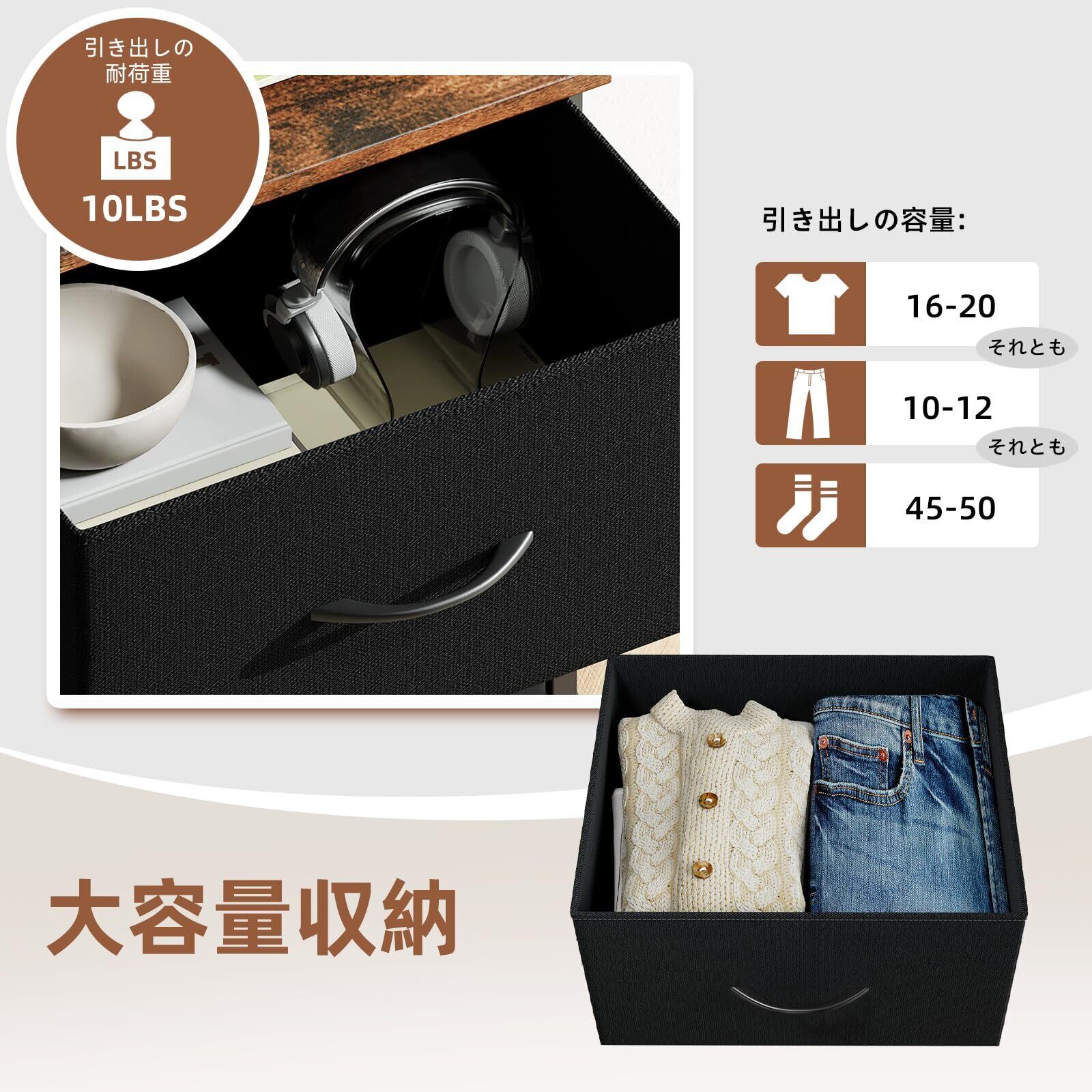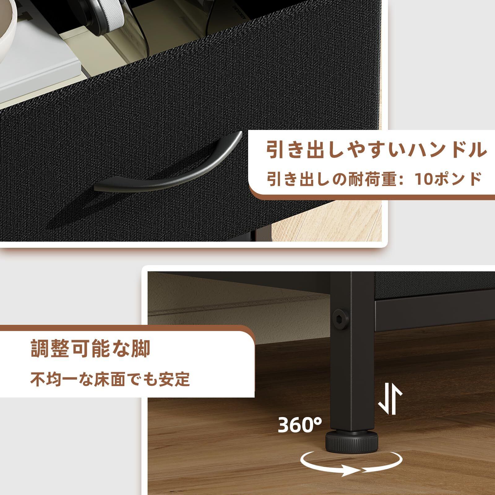 【体に優しい素材を採用】チェストのフレームは上質で頑丈なスチール素材を採用されるため、長持ちのうえ、安定性・耐摩耗性に優れています。しっかりとした構造なので、安定してぐらつきません。通気性がよく丈夫な不織布製の引き出しにはハンドルが付きで、スムーズに開け閉めできます!それに質感がよい木目調の天板はエレガントで、柔らかい雰囲気を!