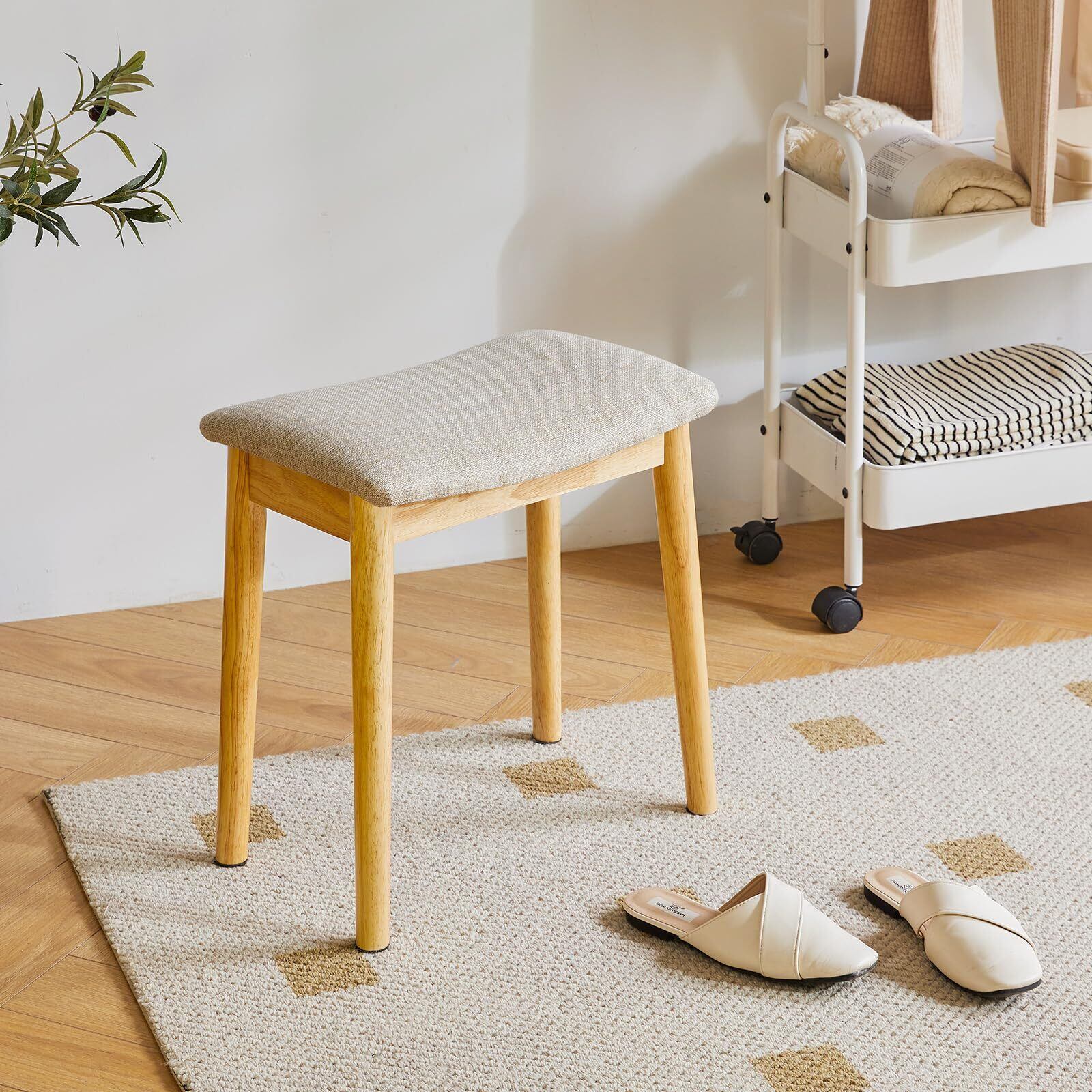 IBUYKE ドレッサーチェア 無垢材 ダイニングチェア 腰掛け 化粧椅子 イス 鏡台用 家庭用 化粧スツール ドレッシングスツール サドルスツール 靴交換スツール リビングルームスツール リビングルーム 寝室 レストラン用 玄関 ナチュラル+ライトリネン JPWBD007NY