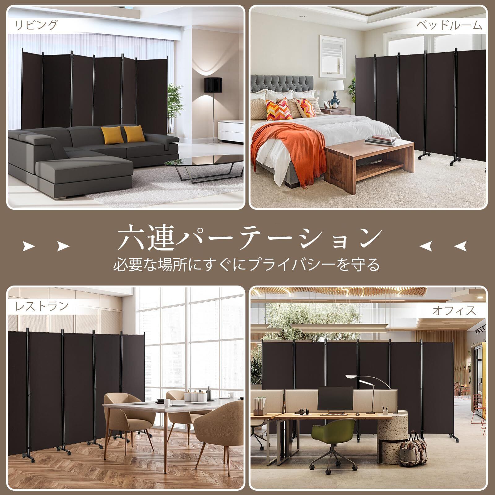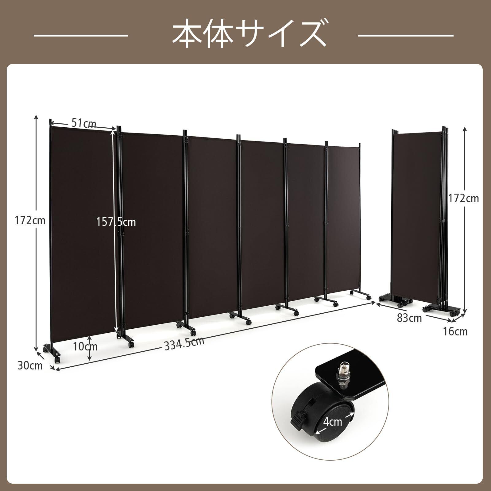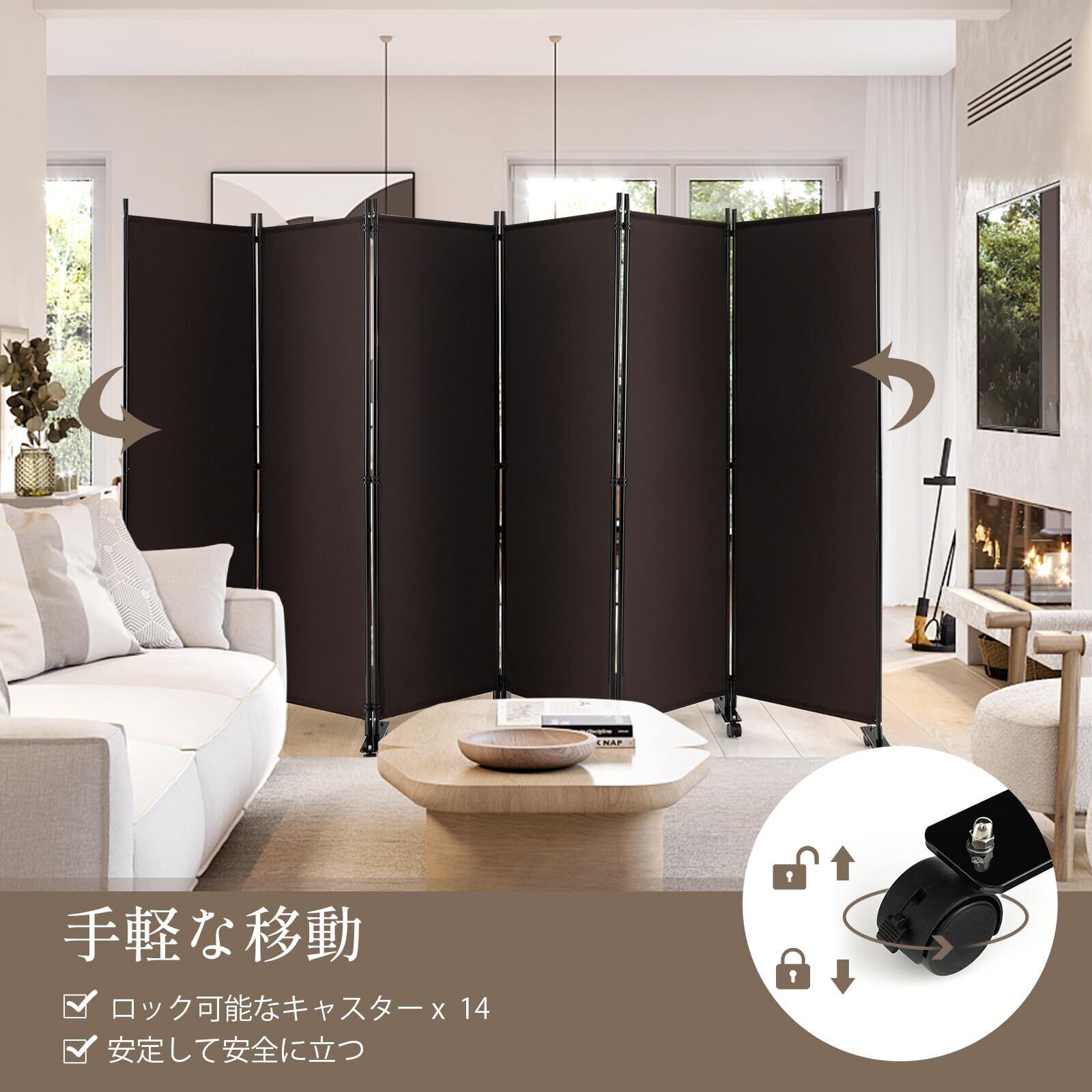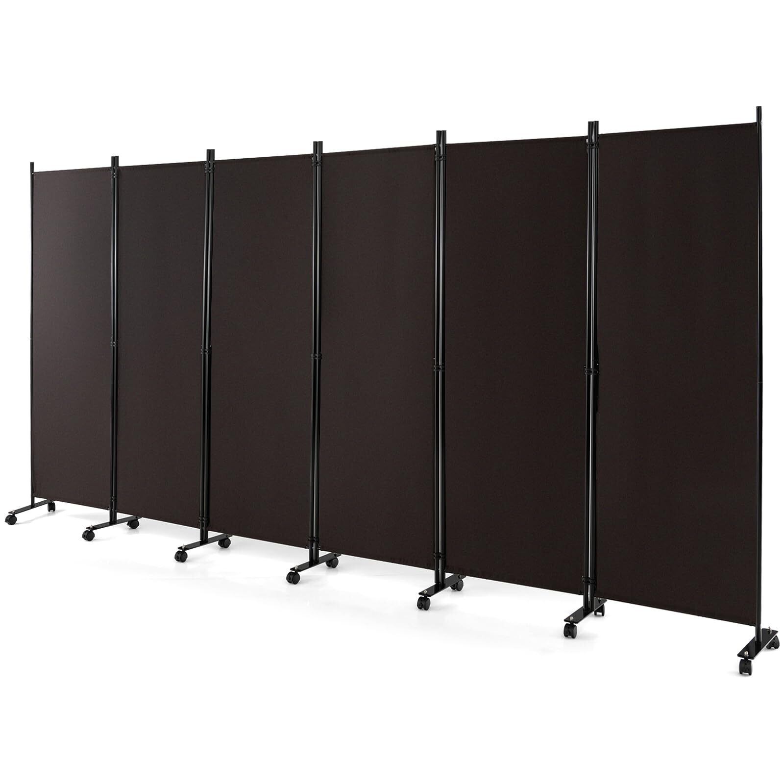 Giantex パーテーション キャスター付き 間仕切り 6連 幅334.5cmx高さ172cm 折りたたみ式 衝立て おしゃれ 仕切り壁 部屋 ついたて 屏風 スクリーン 目隠し 室内 部屋を仕切る 軽量 移動便利 自立式 オフィス 事務所 クリニック 会議室(ブラウン 六連 キャスター付き)