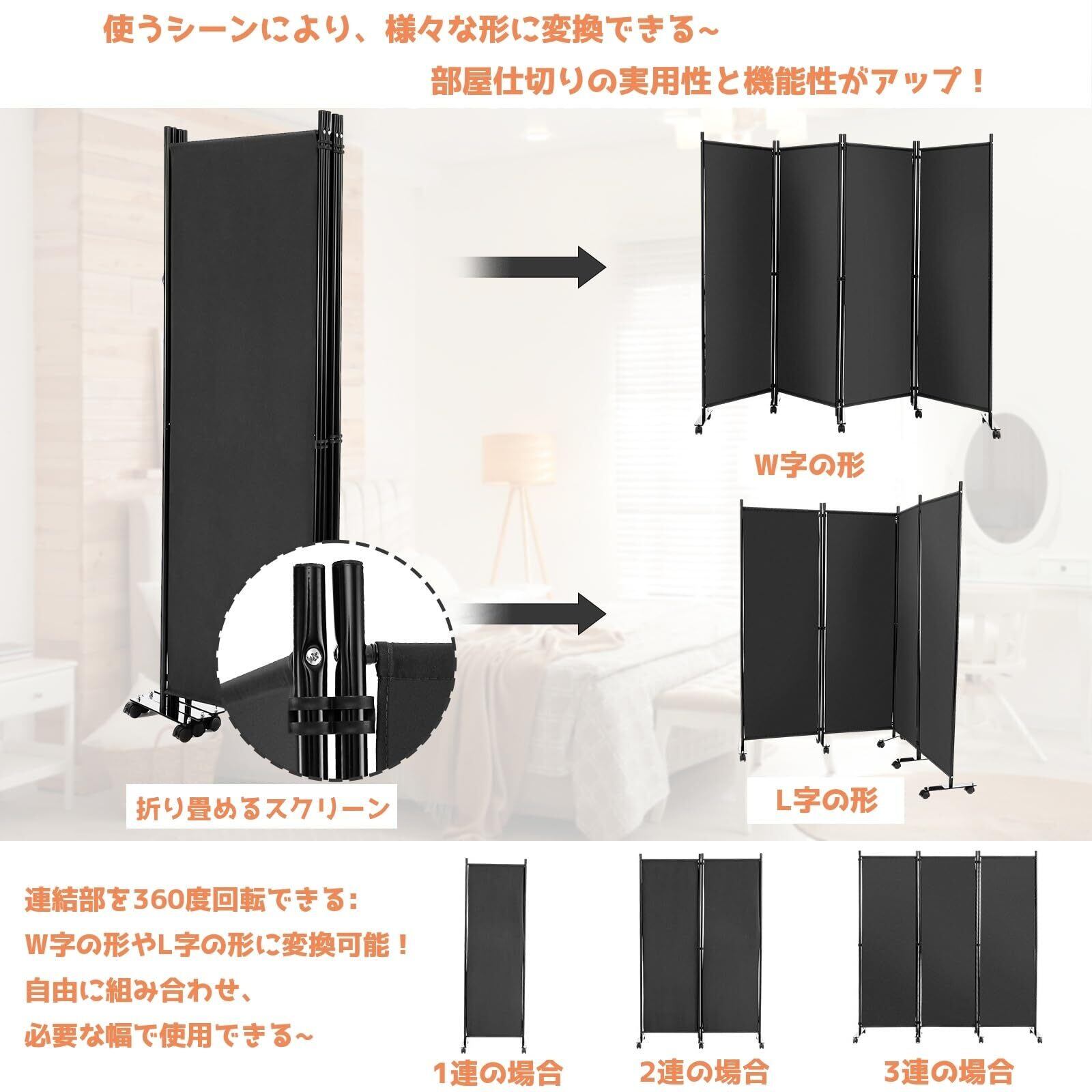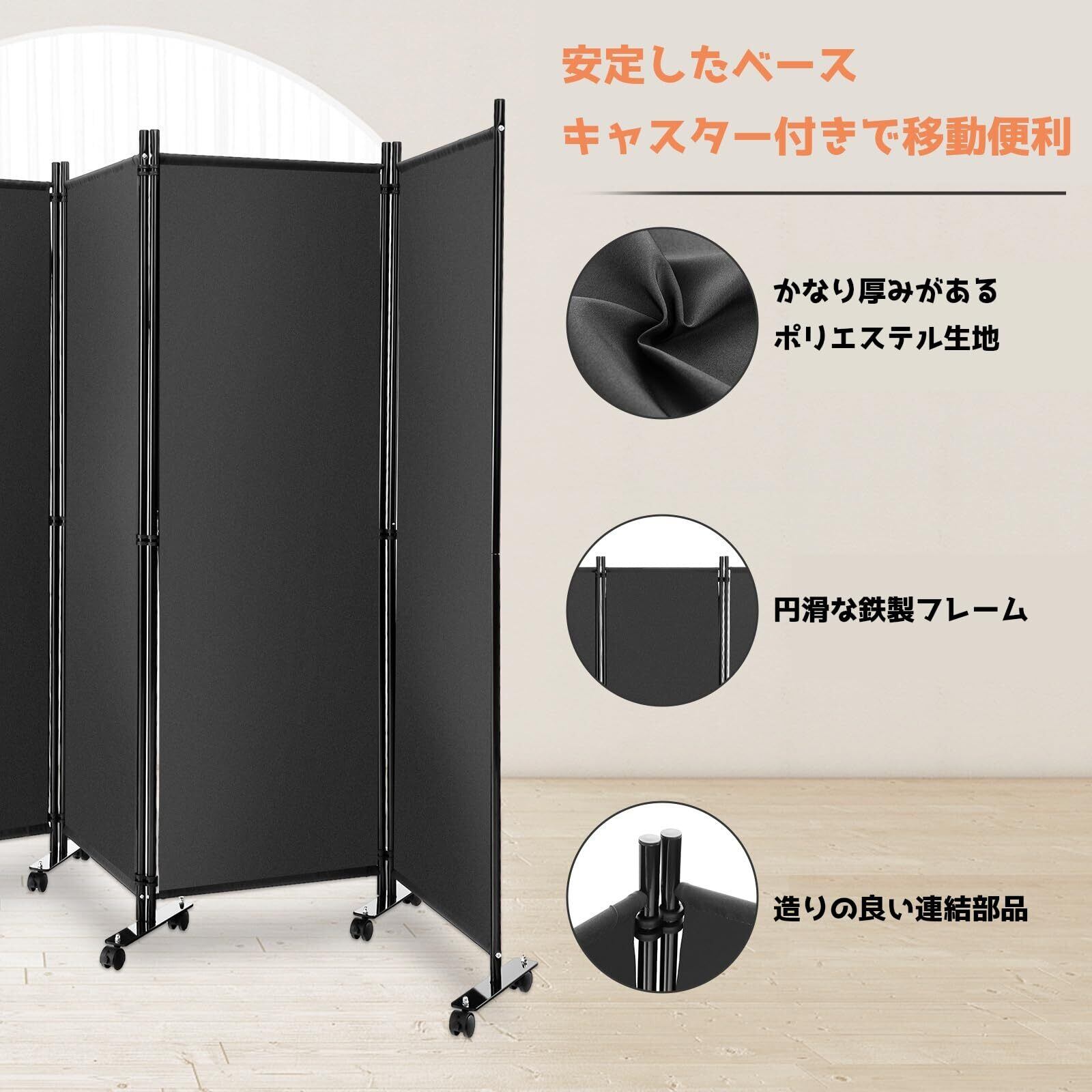 パーテーション 間仕切り 4連 幅225cm 高さ173cm キャスター付き グレー 透けない パーティション 目隠し 衝立 屏風 スクリーン 部屋仕切り 事務所 オフィス 会議室 相談式 クリニック 病院 カフェ 家 ホテル 室内