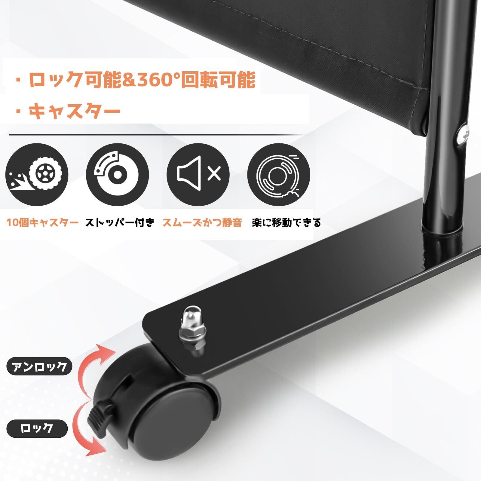 ロックできるかつ360度回転可能のキャスターは10個があります。回転が円滑で、動く音も小さく、安定性もよく、床にも傷つきにくいのです。