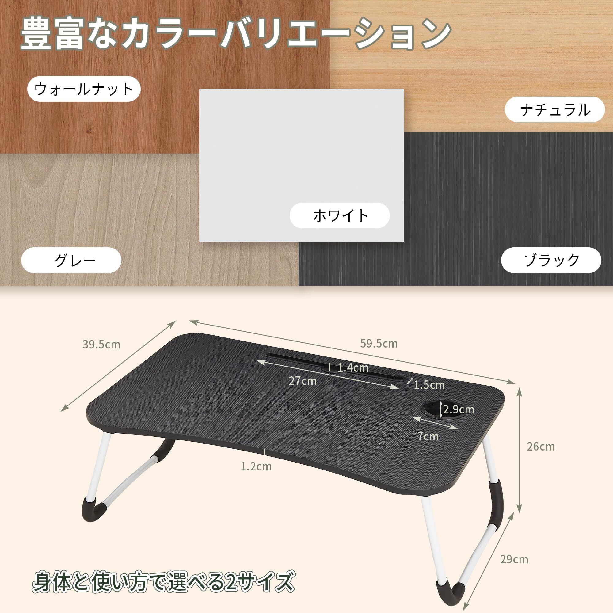 VECELO 折りたたみテーブル 幅60cm × 奥行き40cm × 高さ26cm 2.1kg 耐荷重15kg 軽量 静音設計 使いやすい PCスタンド付き ドリンクホルダー付き 収納簡単 安定性 薄型 コンパクト 持ち運び楽々 拭きやすい天板 脚にクッション付き リーズナブル ブラック【日本正規輸入品】