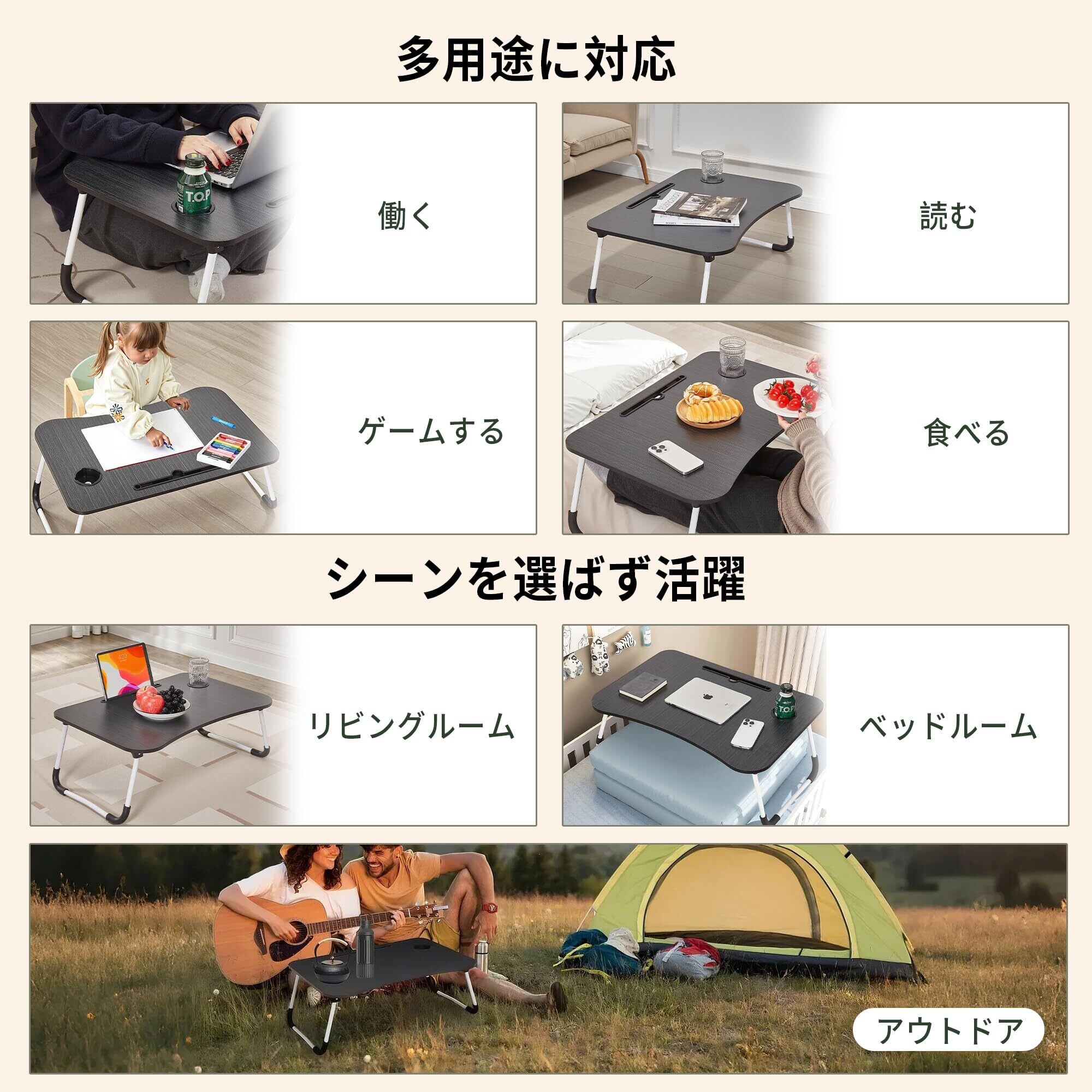 【新着商品】VECELO 折りたたみテーブル 幅60cm × 奥行き40cm × 高さ26cm 2.1kg 耐荷重15kg 軽量 静音設計 使いやすい PCスタンド付き ドリンクホルダー付き 収納簡単 安定性 薄型 コンパクト 持ち運び楽々 拭きやすい天板 脚にクッション付き リーズナブル ブラック【日本正規輸入品】
