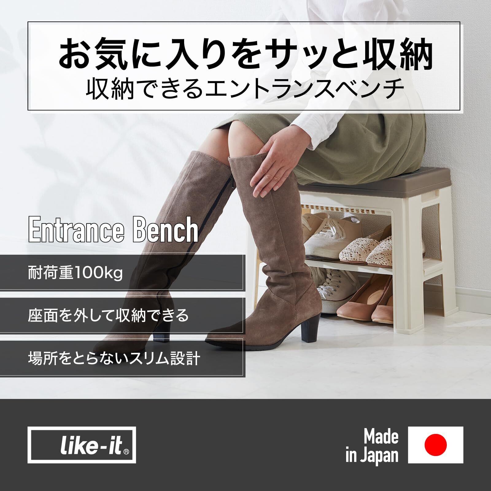 【特価商品】ライクイット(like-it) 靴収納 エントランスベンチ 約幅45.5x奥27x高35.5cm ブラウン 日本製