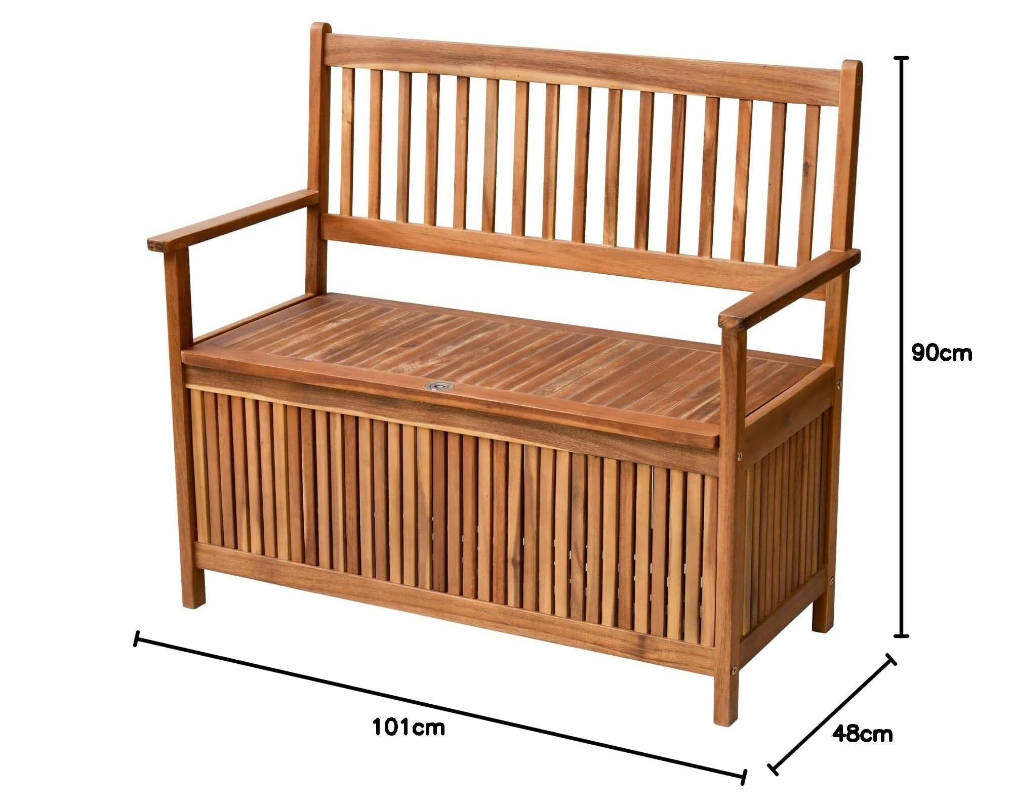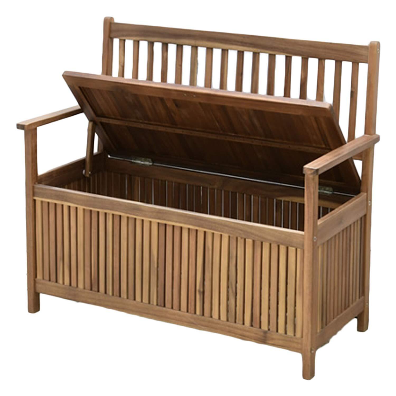 ●アカシア天然木のおしゃれなガーデン収納ベンチ。