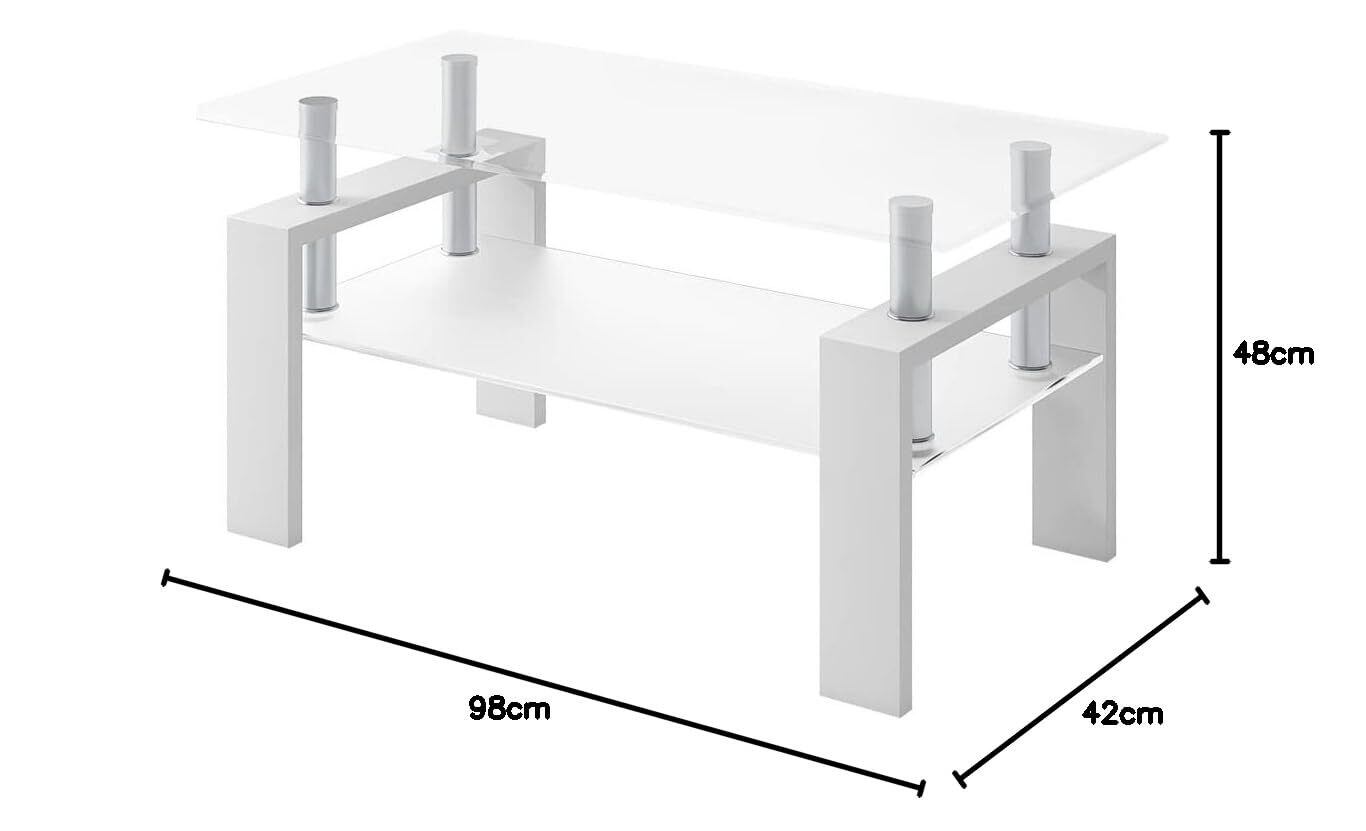 (OSJ)ガラステーブル コーヒーテーブル 幅88cm 強化ガラス天板(クリア天板+ホワイト脚)
