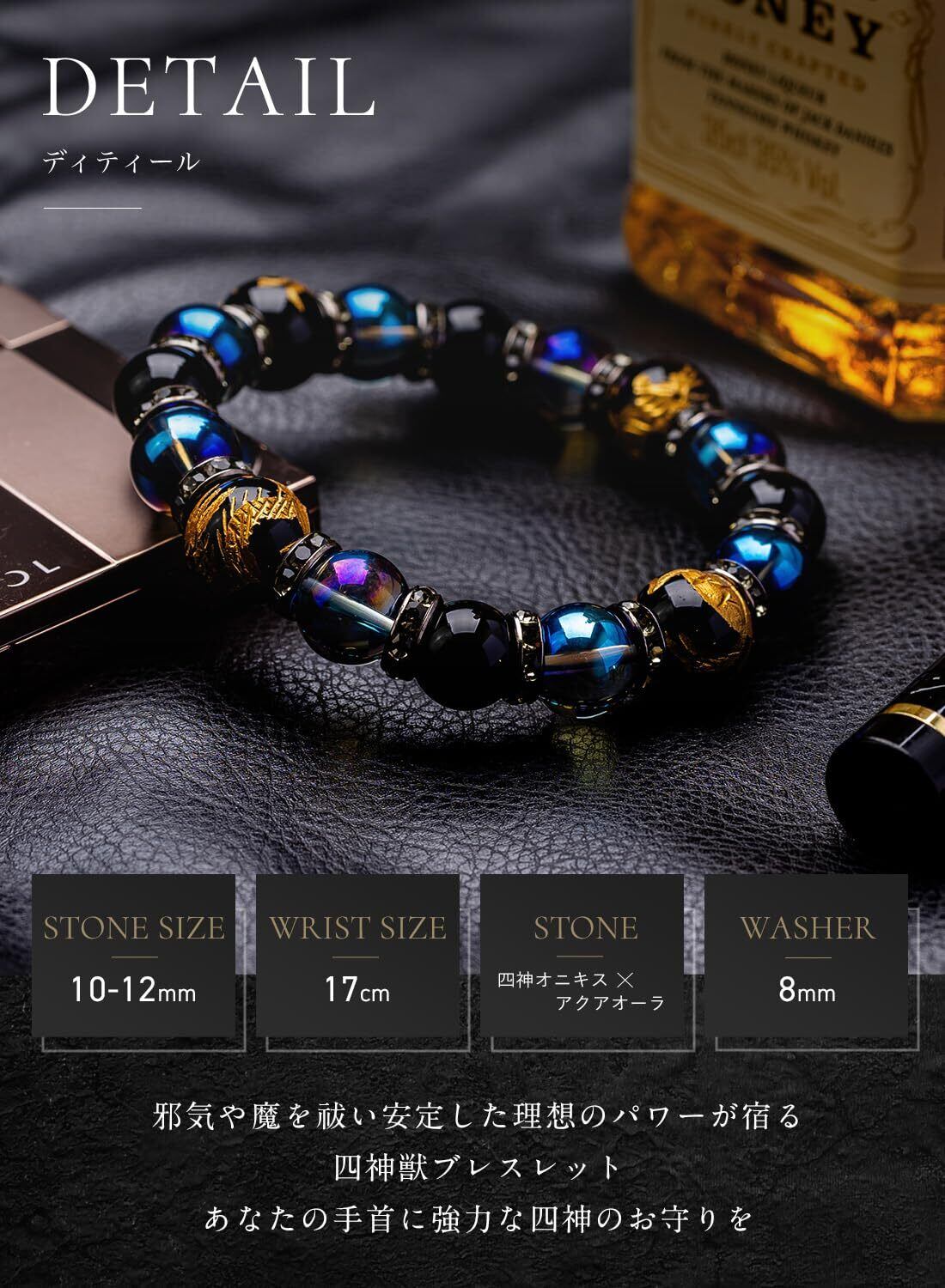[京珠堂] パワーストーン 天然石 四神 魔除け 厄除け メンズ ブレスレット 青龍 白虎 朱雀 玄武