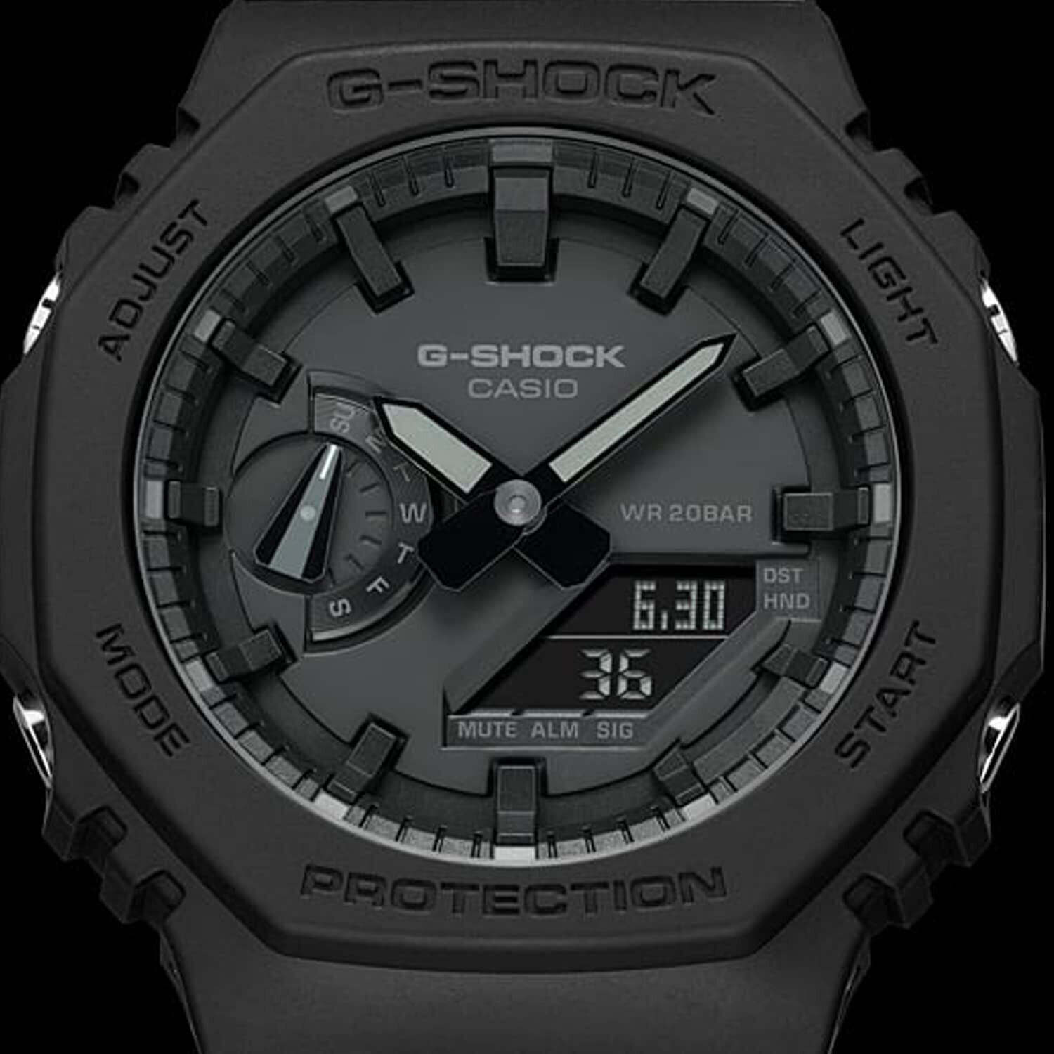 今回のモデルは、初代モデル“DW-5000C”にも採用された“八角形フォルム”を継承。タフな構造はそのままに無駄を省いたシンプルなデザインのコンビネーションモデルを開発しました。更にケース素材には、高剛性を発揮するカーボン繊維入りファインレジンを使用し、G-SHOCKコンビネーションモデルの中で最薄となる、厚さ11.8mmを実現しました。G-SHOCK初代モデルのDNAを受け継ぎながら、デザイン、フォルム、サイズに徹底的にこだわった、G-SHOCKの次世代スタンダードを担うNewモデルの登場です。