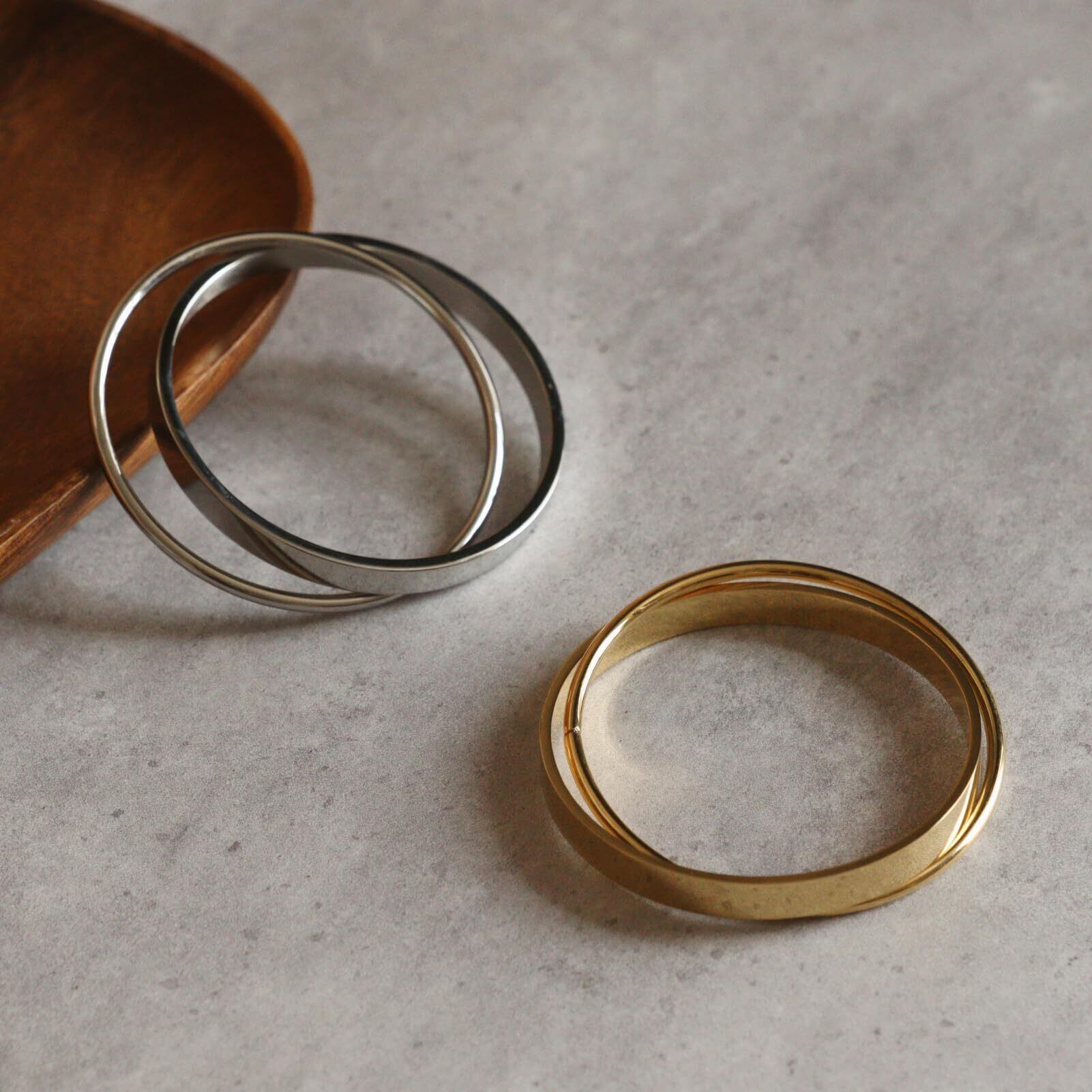 Moonstan バングル ブレスレット レディース 人気 金属アレルギー対応 サージカルステンレス 2連 ゴールド シルバー ピンクゴールド シンプル プレゼント ギフト