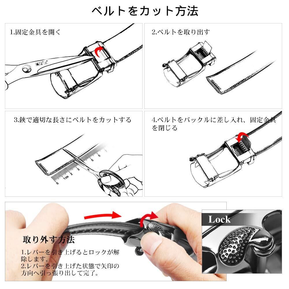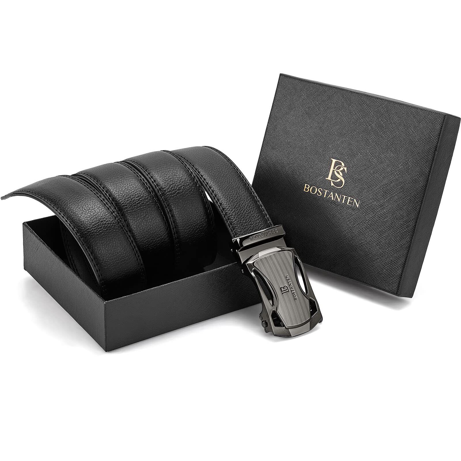 [BOSTANTEN] ボスタンテン ベルト メンズ 本革 ビジネス オートロック式 おおきいサイズ 紳士用ベルト 本革 オートロック式 穴なし (ブラック-3031K, 115cm)