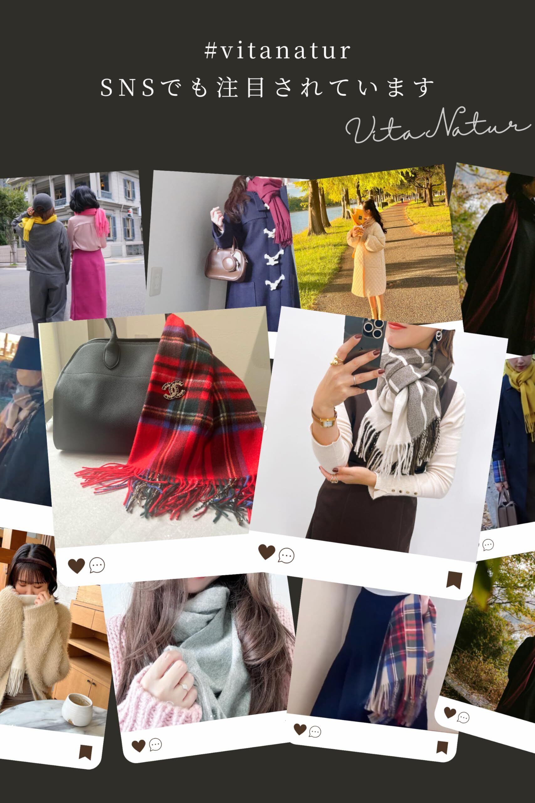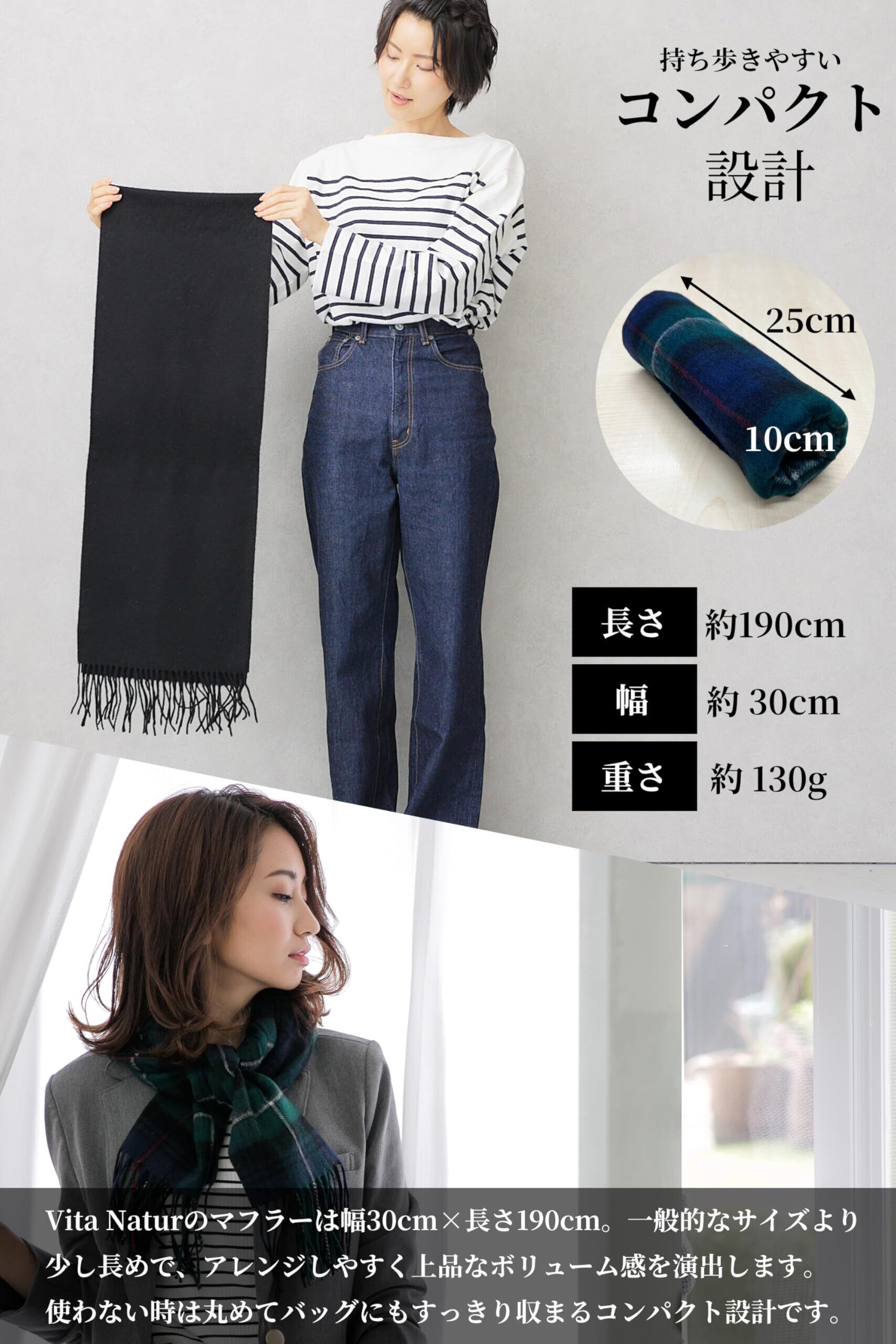 【数量限定】[Vita Natur] ウール95%カシミヤ5% カシミヤブレンドウールマフラー【レディースメンズ共用】(190cm×30cm)