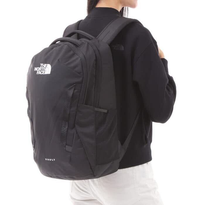 ノースフェイスのバックパックの中で最も人気がある定番モデルといってもいいのがこの「VAULT(ボルト)」シリーズ。立体裁断によるパネル成型がスタイリッシュなデザインです。15インチまでのノート型PCやタブレットなどの電子機器を収納可能なクッション性ポケットに加え、サイドのドリンクホルダーや大小様々なインナーポケットなどを備えた整理整頓しやすい便利な仕様。背面にはフレックスベントサスペンションシステムを採用しており、通気性、クッション性に優れ、長時間のご使用でも快適な背負い心地を実現しています。トップには2つのハンドル、腹部には体とバッグを固定できるアジャスターバックルをあしらい、自立しやすいよう上部にボリュームを持たせるなど、機能性にこだわり抜いた逸品。デイリーユースにもアウトドアシーンにもオススメの、汎用性の高い一品です。【素材・風合い】耐久性に優れたポリエステルキャンバスを採用しています。約27Lの頼もしい容量です。※カラー「BLACK」と「TNFBLACK-NPF」、「GREYHEATHER×BLACK」と「MIDGREYDARKHEATHER」、「SHADYBLUE」と「SHADYBLUE×WHITE」は、入荷時期の違いによりカラー名が異なります。その他の仕様は同じです。