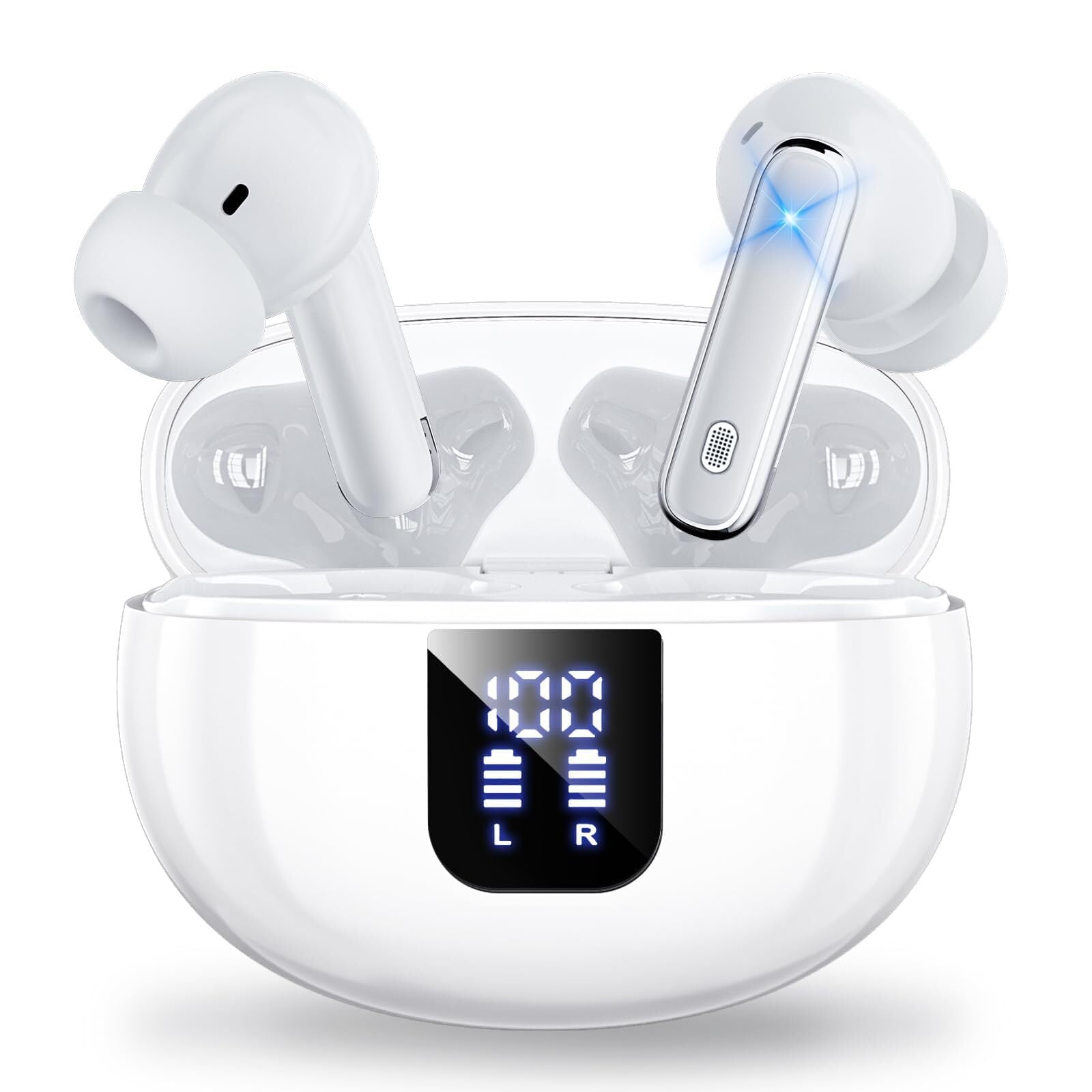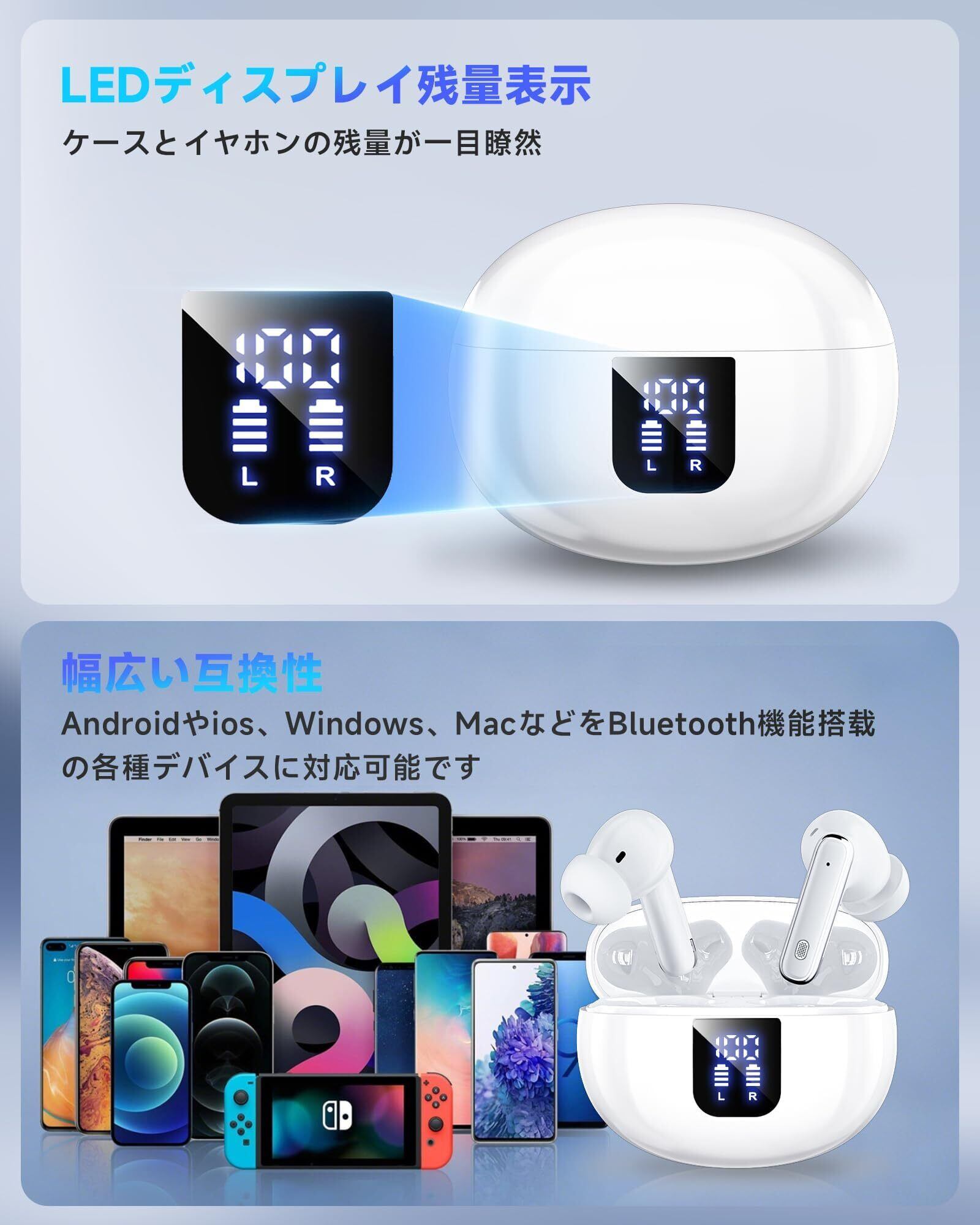 【新春セール】イヤホン Bluetooth ワイヤレスイヤホン AIスマート 2026年最新Bluetooth6.1 HiFi音質 ブルートゥースイヤホン 最大36時間再生 LEDディスプレイ Type-C充電 IPX7防水 小型/軽量 iOS/Android適用 WEB会議通勤/通学/スポーツ/音楽/ゲーム ブラックヘッドフォン(白)