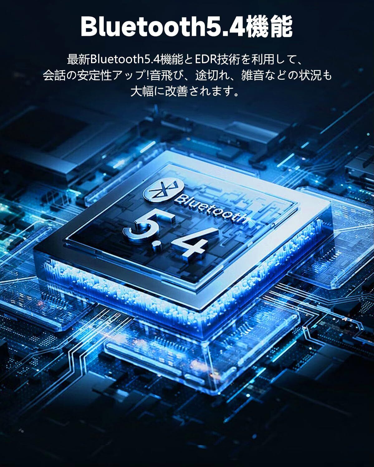 Bluetooth5.4 を搭載し、接続の安定性と低遅延を実現。さらに ANC ノイズキャンセリング機能により、通勤中の騒音やオフィスの背景音などを効果的に遮断し、没入感のある音楽鑑賞や集中したオンライン会議が可能になります。