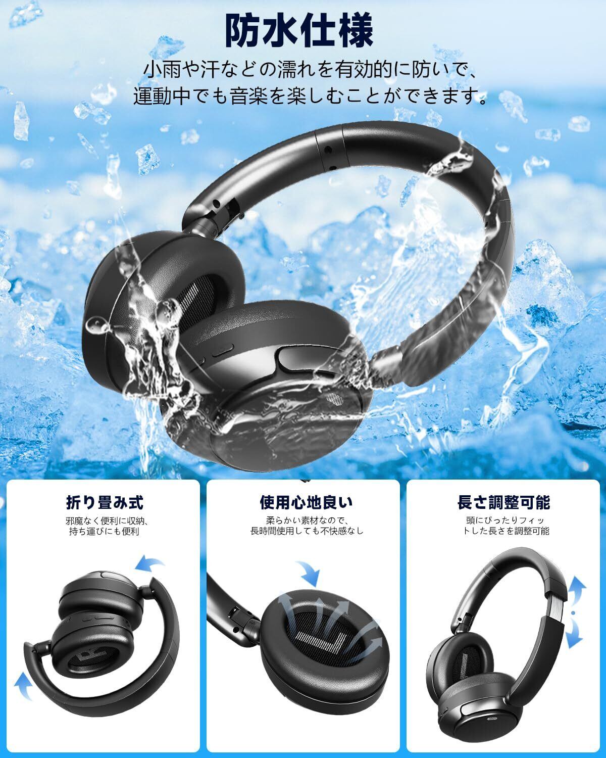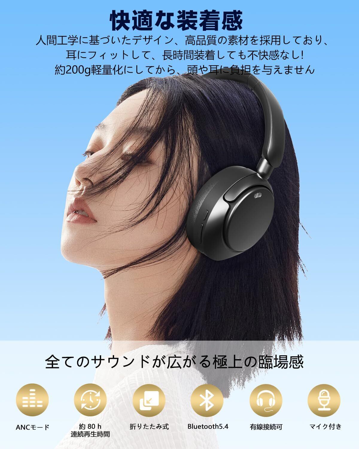 【数量限定】ヘッドホン bluetooth ワイヤレスヘッドホン 6つのシリコンマイク搭載ANCノイズキャンセリング最大80時間再生AIスマートIPX7防水2026最新のBluetooth 5.4有線無線両用ハンズフリー通話対応、マルチポイント接続対応装着が快適で軽量/防漏音/包耳式デザイン/折りたたみ可能です/ゲーム/テレワーク/通学/通勤/スポーツ/音楽用 iPhone/Android対応