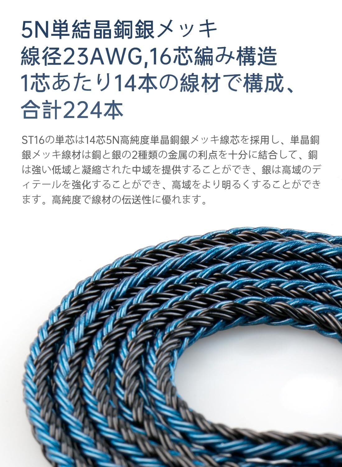 ❄【16芯編み構造】 KINBOOFI st16 ケーブル1芯あたり14本の線材で構成、合計224本 ST16の単芯は14芯5N高純度単晶銅銀メッキ線芯を採用し、単晶銅銀メッキ線材は銅と銀の2種類の金属の利点を十分に結合して、銅は強い低域と凝縮された中域を提供することができます、銀は高域のディテールを強化することができます、高域をより明るくすることができます。高純度で線材の伝送性に優れます。