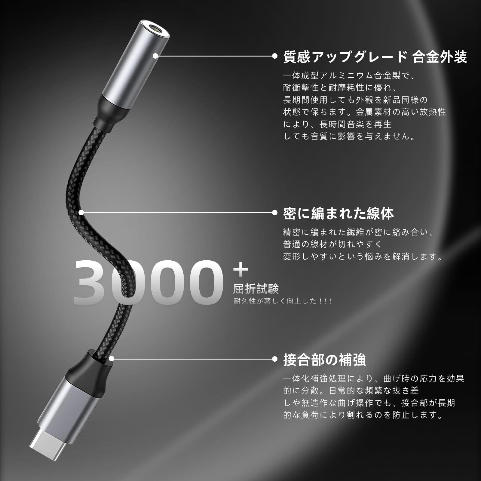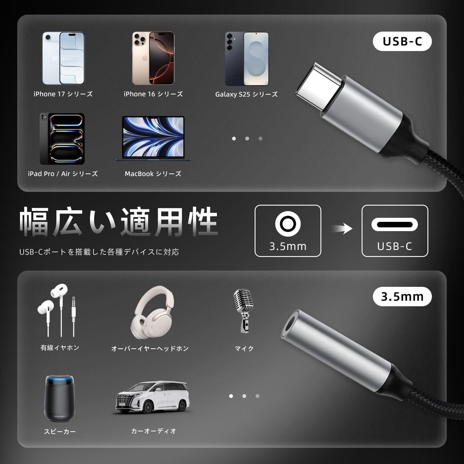 【2025アップグレード版】USB C イヤホンジャック変換 ハイレゾ対応 Hi-Fi音質 搭載24bit/96KHz対応 音量調節/通話/音楽対応 iPhone17/16/15/iPad/iPad Pro/Android/type-C デバイスに対応