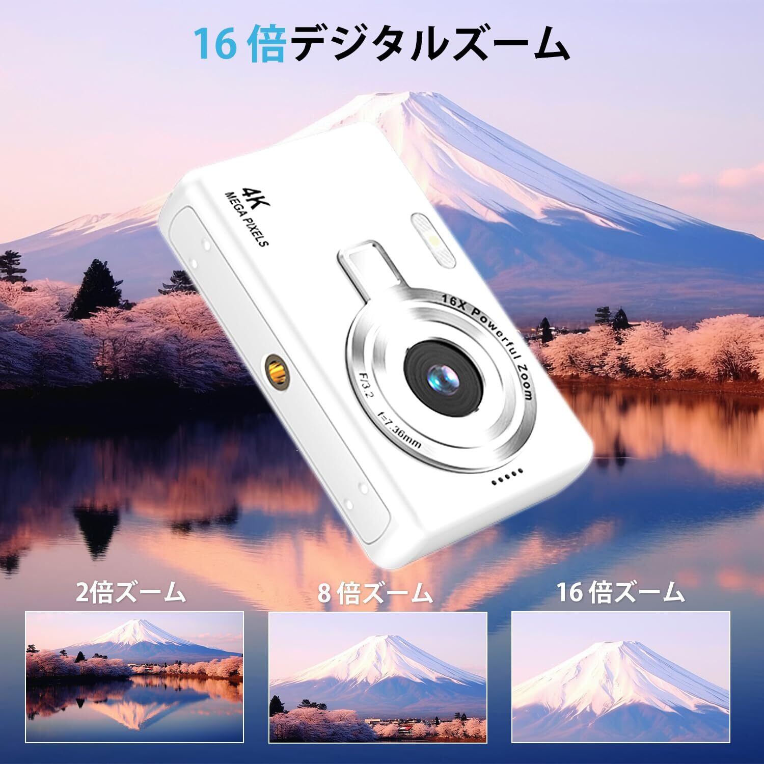 デジカメ【4K動画撮影、5000万画素】デジタルカメラ 32GB Micro SDカード付き AFオートフォーカス コンパクトカメラ 3.0インチの大画面 16倍ズーム フラッシュ 手振れ補正機能を備えています ウェブカメラ 充電式 大容量バッテリー 軽量 日本語の取扱説明書 学生 初心者にも最適です 修学旅行