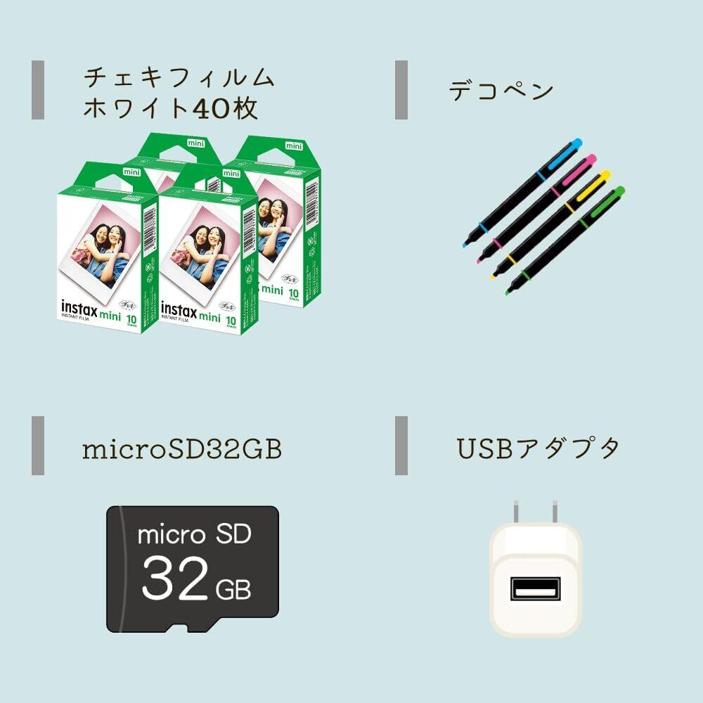 チェキ instax mini LiPlay リプレイ ミスティーホワイト&巾着&フィルム40枚&ペン&SD&アダプタの合計9点セット