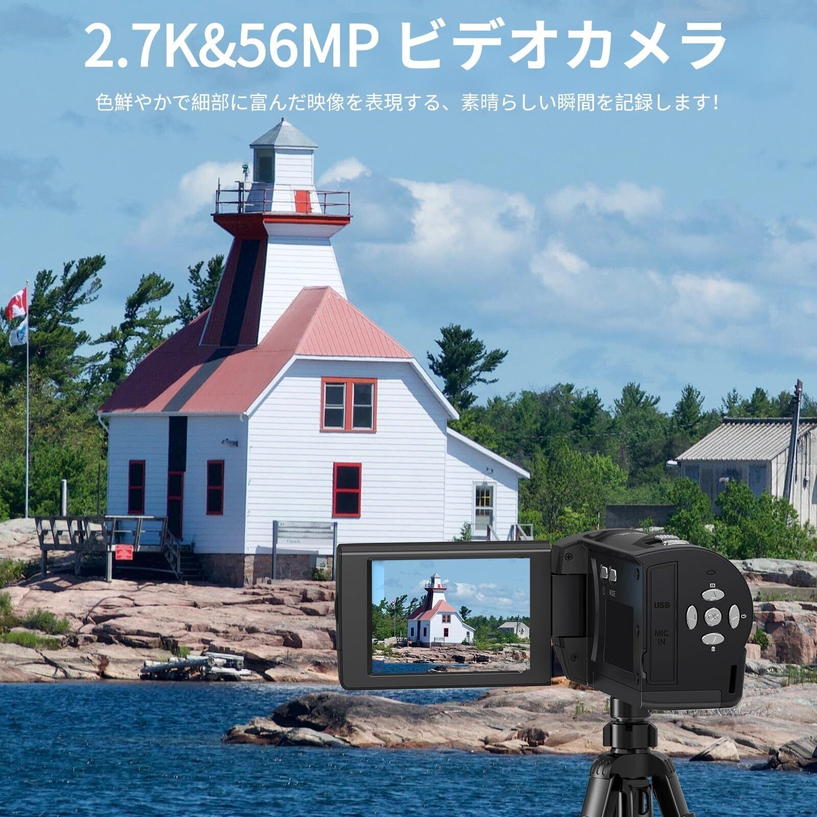 【2022最新】ビデオカメラ【2.7K動画撮影、5600万画素】YouTubeカメラ 32GB SDカード付き コンパクトカメラ 2.8インチの大画面 16倍ズーム フラッシュ ウェブカメラ 充電式 大容量バッテリー 軽量 日本語の取扱説明書 学生 初心者にも最適です 修学旅行