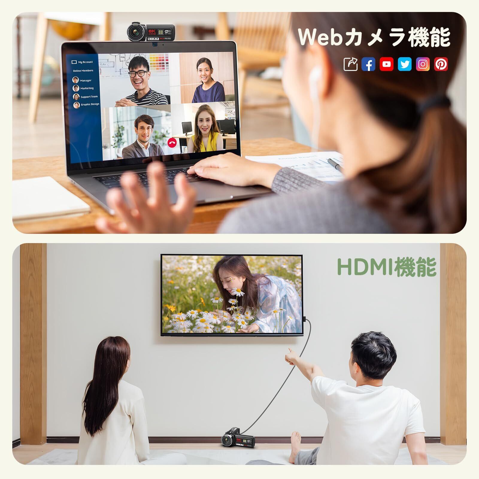 【2022最新】ビデオカメラ【8K動画撮影、6400万画素】YouTubeカメラ 32GB SDカード付き コンパクトカメラ 3.0 インチ タッチスクリー 18倍ズーム フラッシュ ウェブカメラ 2.4Gリモコン 充電式 大容量バッテリー 軽量 日本語の取扱説明書 学生 初心者にも最適です 修学旅行 セット