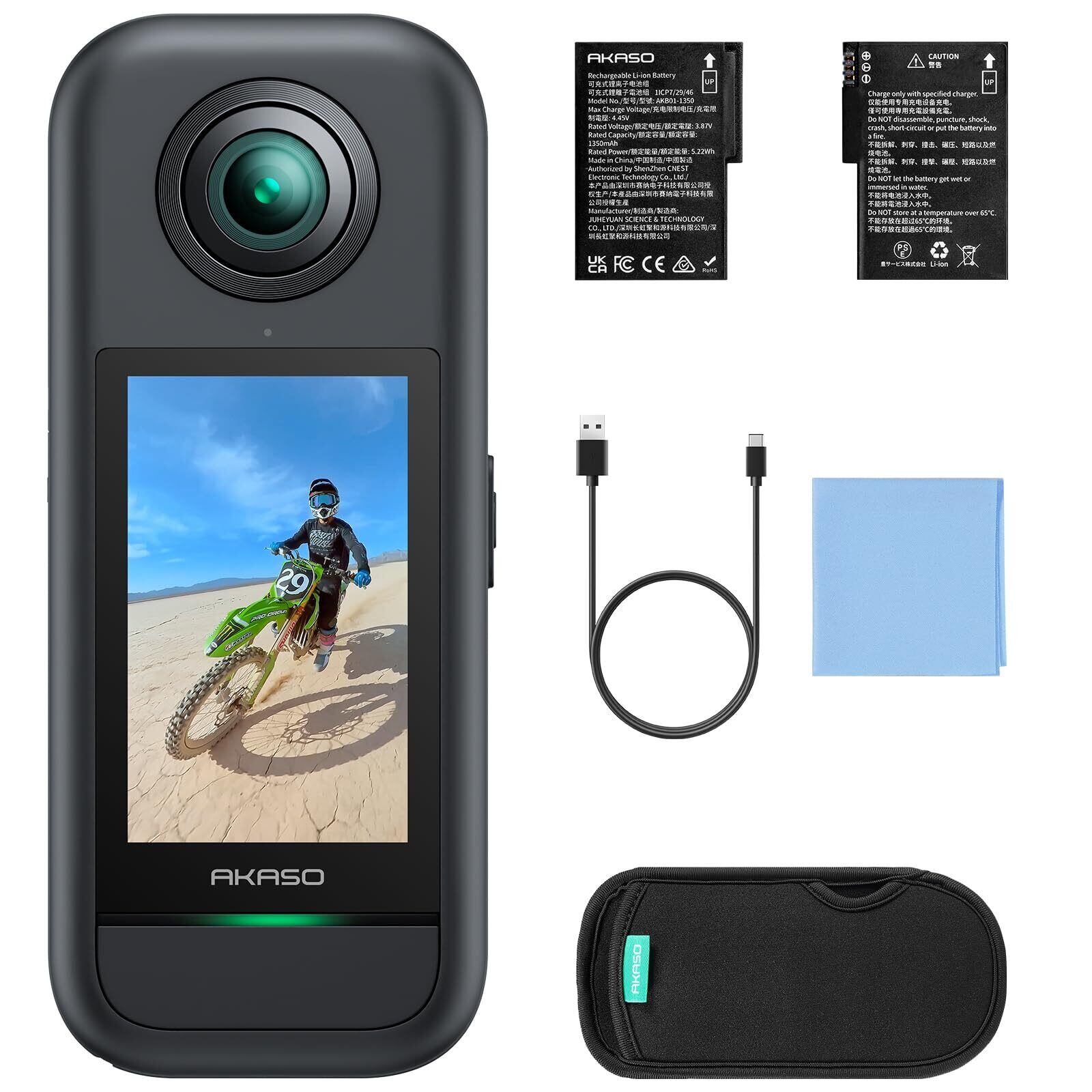 AKASO 360 360度カメラ アクションカメラ-5.7K360度動画 72MP360度写真 新型1/2インチ48MPセンサー 360度水平維持 360° スーパースムース 安定化機能 AI編集 見えない自撮り棒効果 2.29" タッチスクリーン 長時間バッテリー