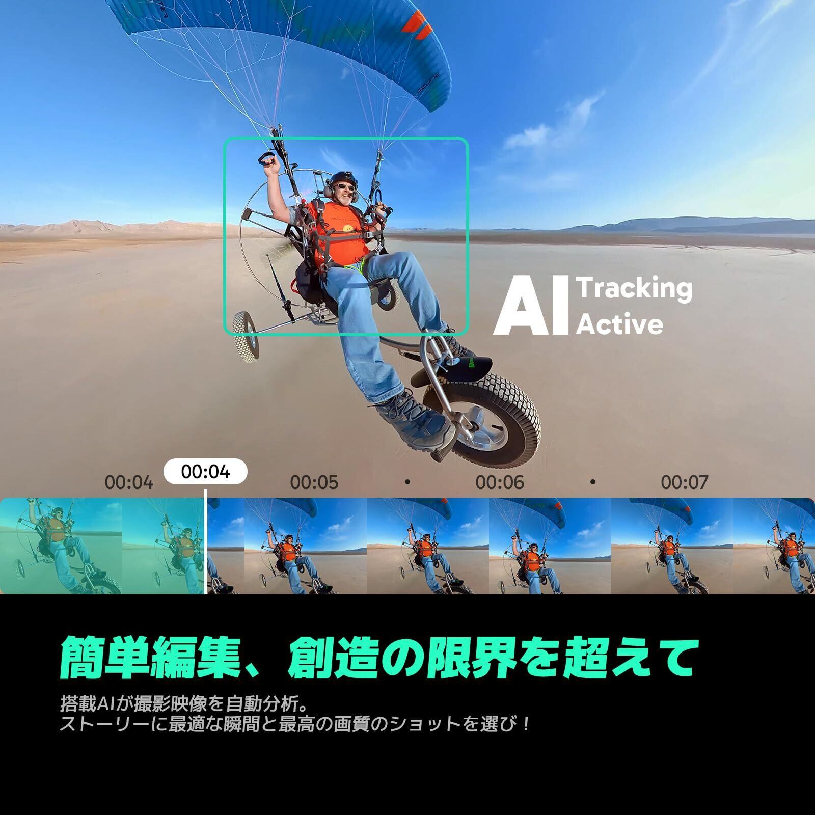 【AI被写体トラッキング・高音質なオーディオ】AIトラッキングが被写体を自動認識するから常にフレームの中心にキープ、プロ並みのトラッキングショットが可能です。デュアルマイクとスマートウィンドシールドで、どんな状況でもクリアで自然な音声を提供、環境に左右されないプロ級音声収録を実現します。