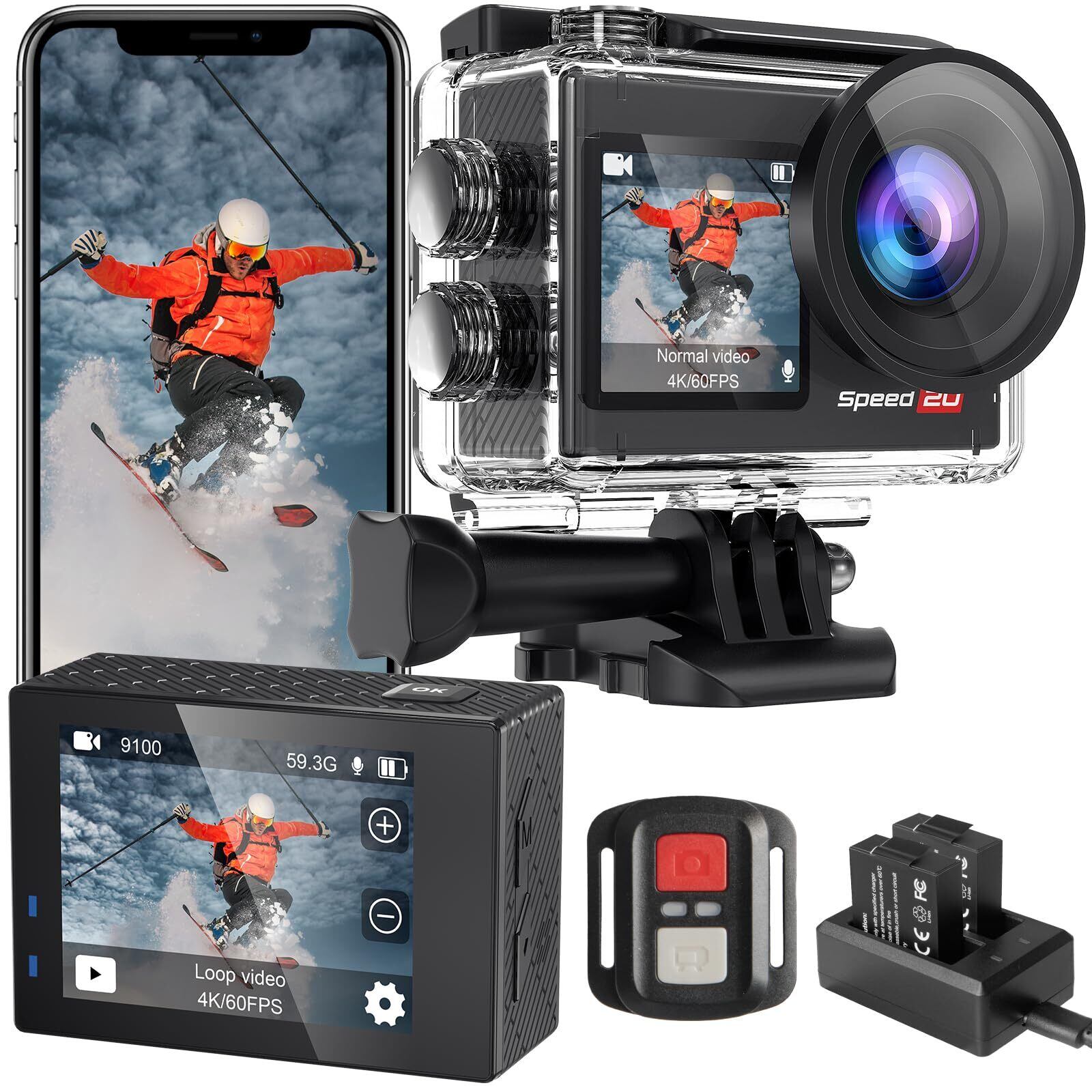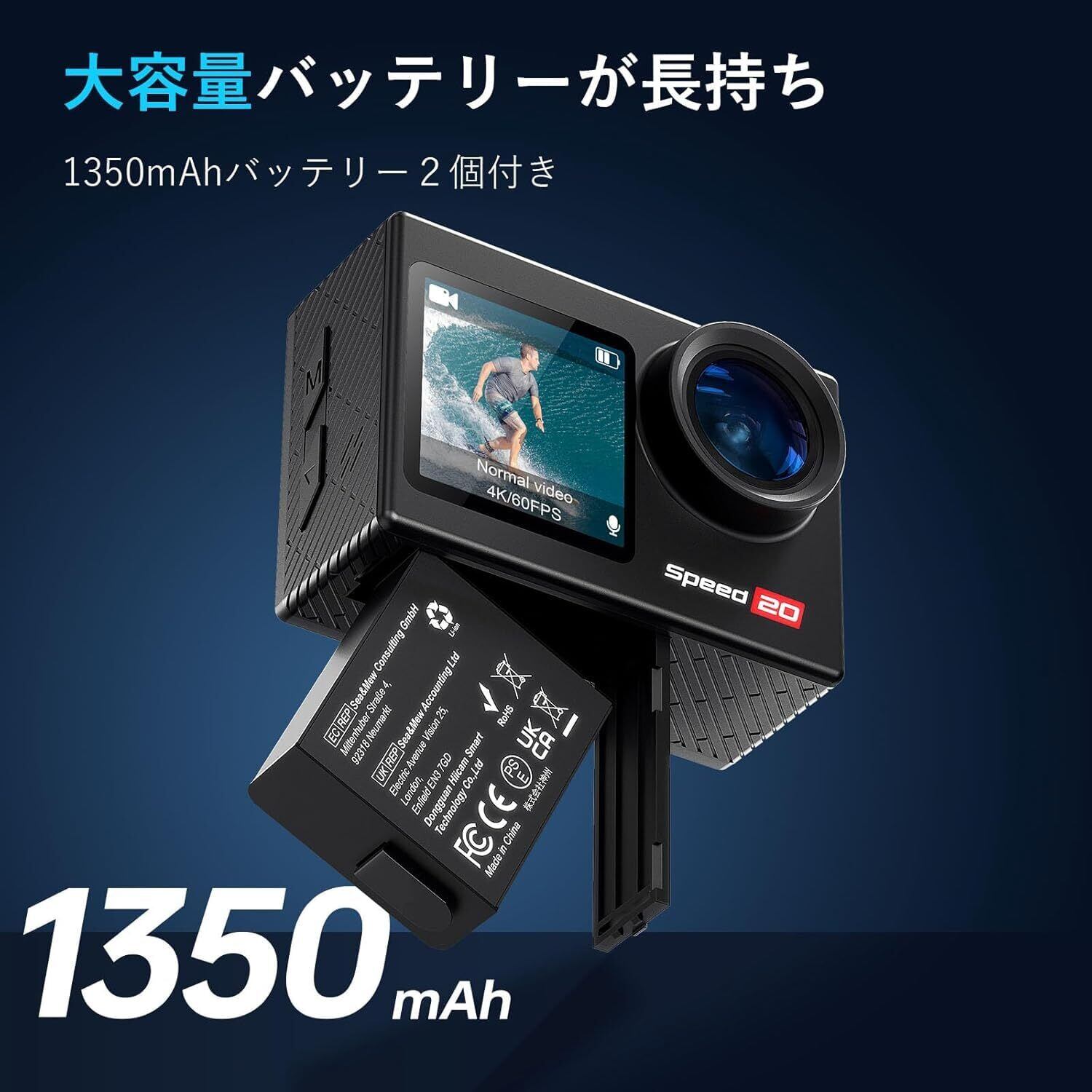 Speed20 アクションカメラ スポーツカメラ 4K/60fps 超高清画質 6軸EIS手ブレ補正ウェアラブルカメラ 防水ケース付きで40m防水 本体10m防水 1350mAh大容量バッテリー スマホ連携アプリ対応アクションカム 前后2つのタッチスクリーン 170°広角レンズ 5倍ズーム アクションカメラ 自転車 登山 スキー ダイビング