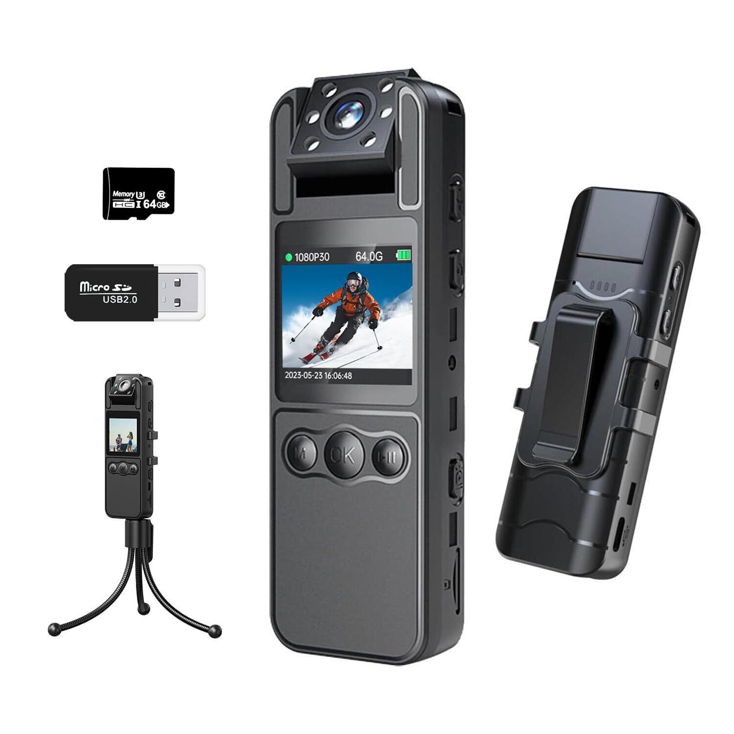 ボディカメラ 【真の1080Pビデオ/ノイズ低減録画/48MP撮影】 小型カメラ アクション ウェアラブル 64GB高速SDカード 1.4インチLCDスクリーン 180°回転レンズ モーション検出 ナイトビジョン 1750mAh長時間録画 OTG対応 軽量 取り外し可能なデザインのバッククリップ 警察/サイクリング/旅行用ビデオ日本語取扱説明書付き