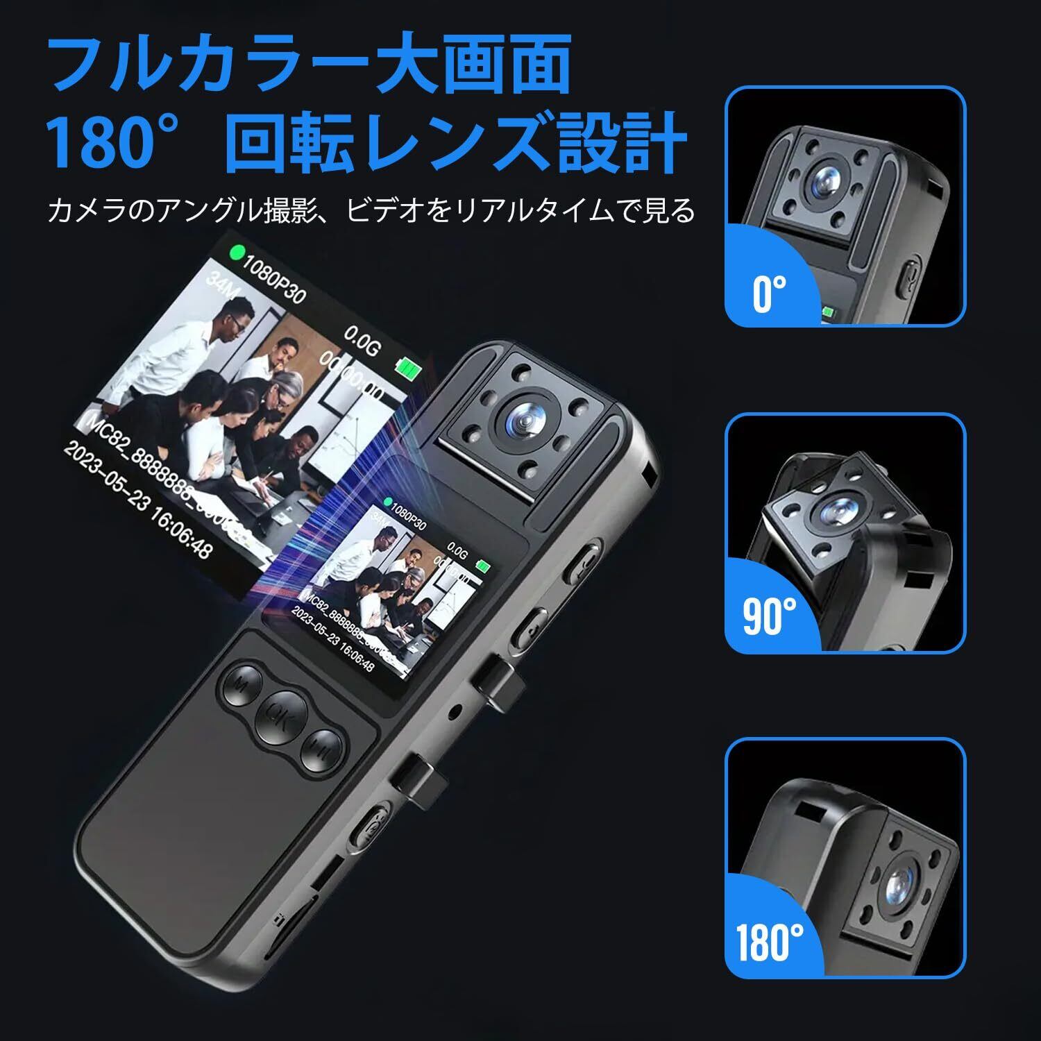 【2022最新】ボディカメラ 【真の1080Pビデオ/ノイズ低減録画/48MP撮影】 小型カメラ アクション ウェアラブル 64GB高速SDカード 1.4インチLCDスクリーン 180°回転レンズ モーション検出 ナイトビジョン 1750mAh長時間録画 OTG対応 軽量 取り外し可能なデザインのバッククリップ 警察/サイクリング/旅行用ビデオ日本語取扱説明書付き