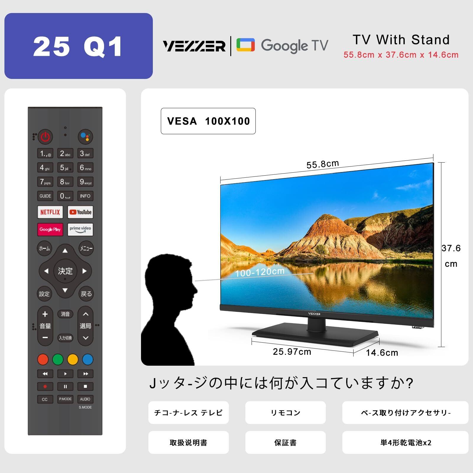 【人気商品】チューナーレス テレビ 25型 フルハイビジョン Google TV ネット動画対応 スマート 液晶テレビ HDR対応 Dolby Audio Google Cast内蔵 音声検索 VESA規格 2025モデル