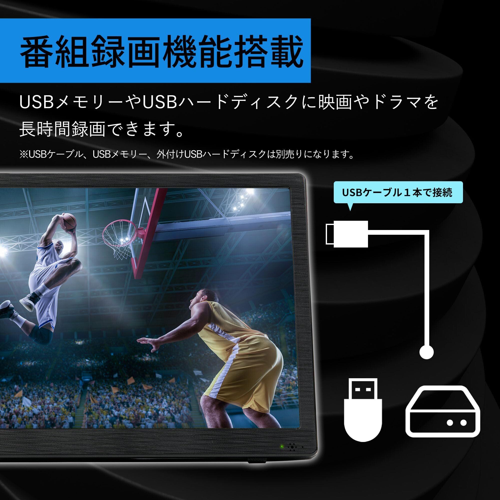 [端子]入力:アンテナ、DC電源、USB×2(番組録画・メディア再生)、AVイン、HDMI、miniB-CASカードスロット / 出力:AVアウト、イヤホン(ステレオミニピン3.5Φ)