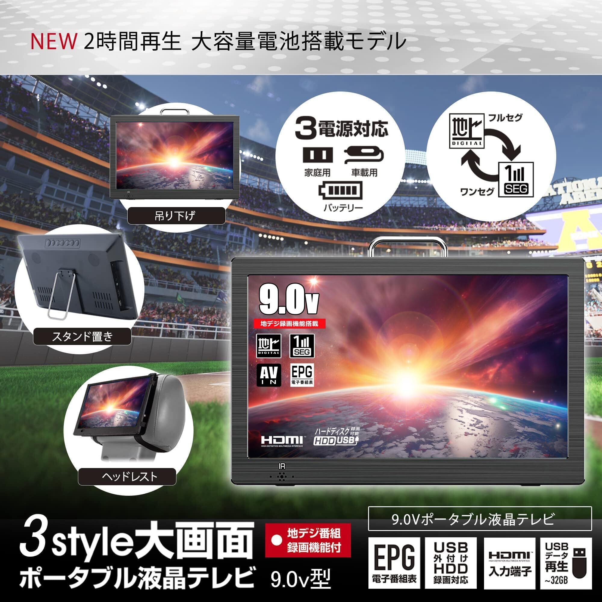 【数量限定】[ODP]録画機能付き ポータブルTV 9.0インチ 3電源対応 [ 家庭用AC/車用DC/内蔵電源 ] 3スタイル対応 [ スタンド/壁掛け/車載] 地デジHDD録画機能 USBデータ再生機能 HDMI入力 専用車載バッグ付属 簡易アンテナ付属 フルセグ・ワンセグ自動切替 軽量 小型 音楽 画像 液晶テレビ TV 9 10 15 14 19