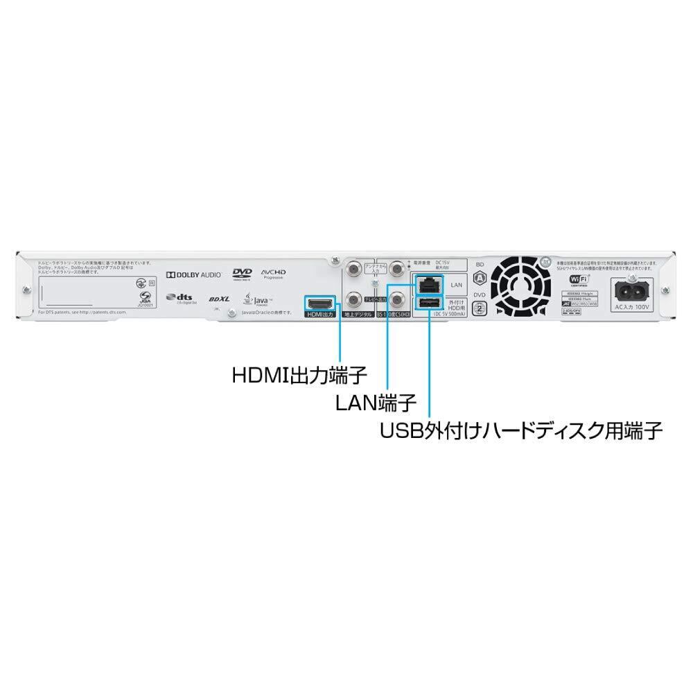 端子:HDMI出力×1、USB×1(外付けHDD用)、LAN×1