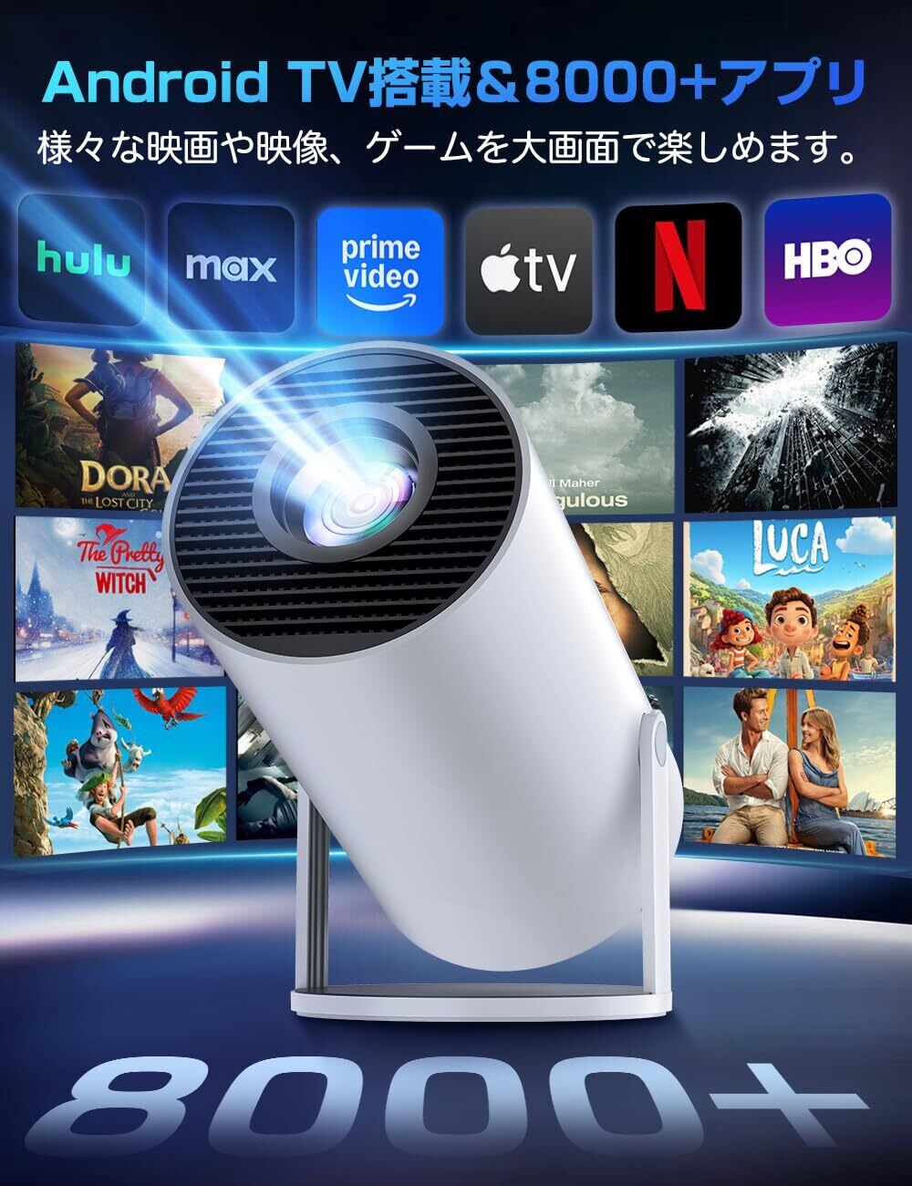 【特価商品】プロジェクター 家庭用【2025年進化モデル・27000LM・4K対応】超小型 270°回転 高輝度 1080P 天井投影 Wi-Fi6大画面 Android TV搭載 Bluetooth5.4 HiFiスピーカー 自動台形補正 ズーム機能 短距離投影 軽量 IOS/Android/パソコン/DVD/PS機/SWITCH接続可 プレゼントに最適 モバイル ホームプロジェクター(ホワイト)