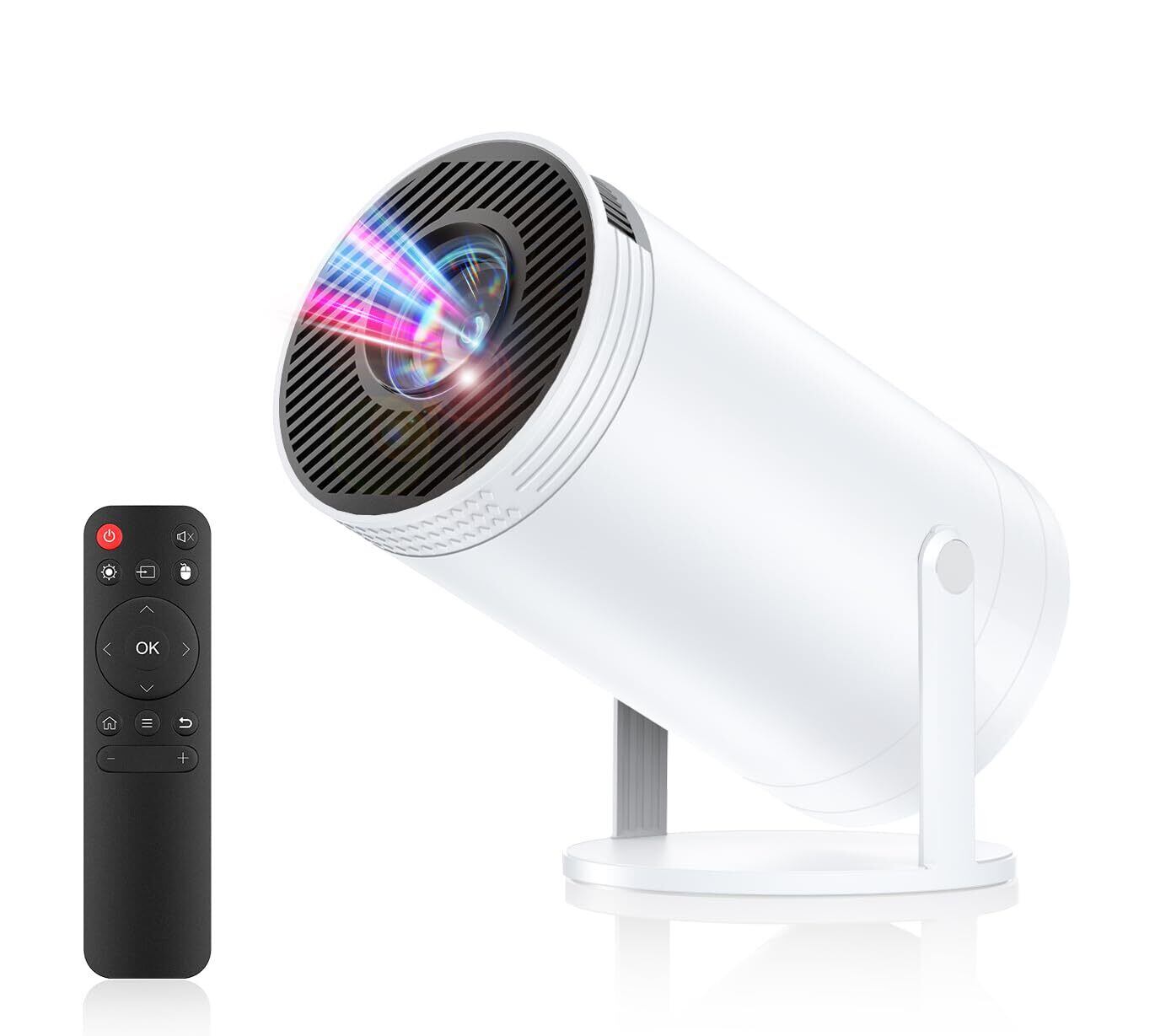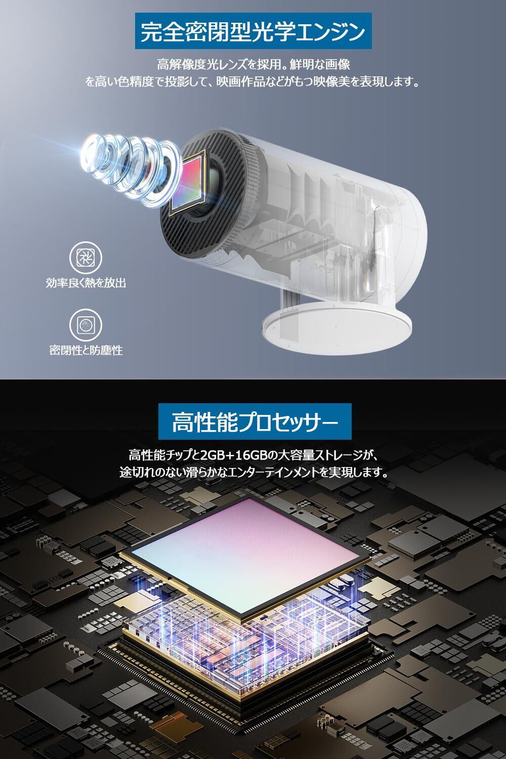 プロジェクター 小型 プロジェクター 家庭用【業界ミニサイズ500g超軽量・2GB+16GBの大容量ストレージ】Android TV搭載 27000LM 4K対応 Wi-Fi6 Bluetooth5.4 270°回転 最大200インチ大画面 天井投影 フルHD Netflix対応 高輝度 自動台形補正 ぷろじえくたー 家庭用 小型 iOS&アンドロイド スマホなどに対応 (ホワイト)