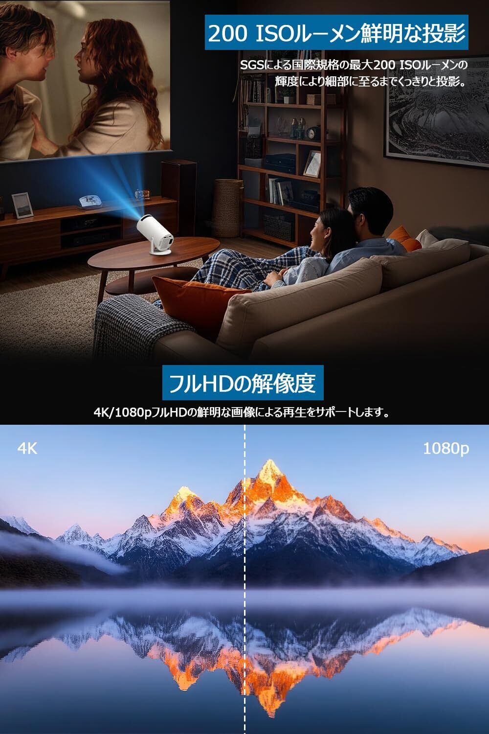 【フルHDの高解像度・4K対応】200 ANSIルーメンの明るさ、そして27000LMの高解像度で細部までクリアにみえ、質感までよりリアルに伝わります。HDR10対応で、表現が難しいとされる黒色も白色も深みのある色合いに。まだ4K対応の高画質技術により、美しい映像の再生をお楽しみいただけます。さらに、目に優しい拡散光イメージングとアンチブルーライト技術により、直射光よりも柔らかい光源で、子供やお年寄りでもご安心に好きなアニメやテレビ番組などを楽しみください。【簡単操作】①電源をON/OFF:本体の電源スイッチを3秒押す。②焦点を調節:スクリ一ンまでの距離に応じて焦点調整リングで焦点を調整してください。