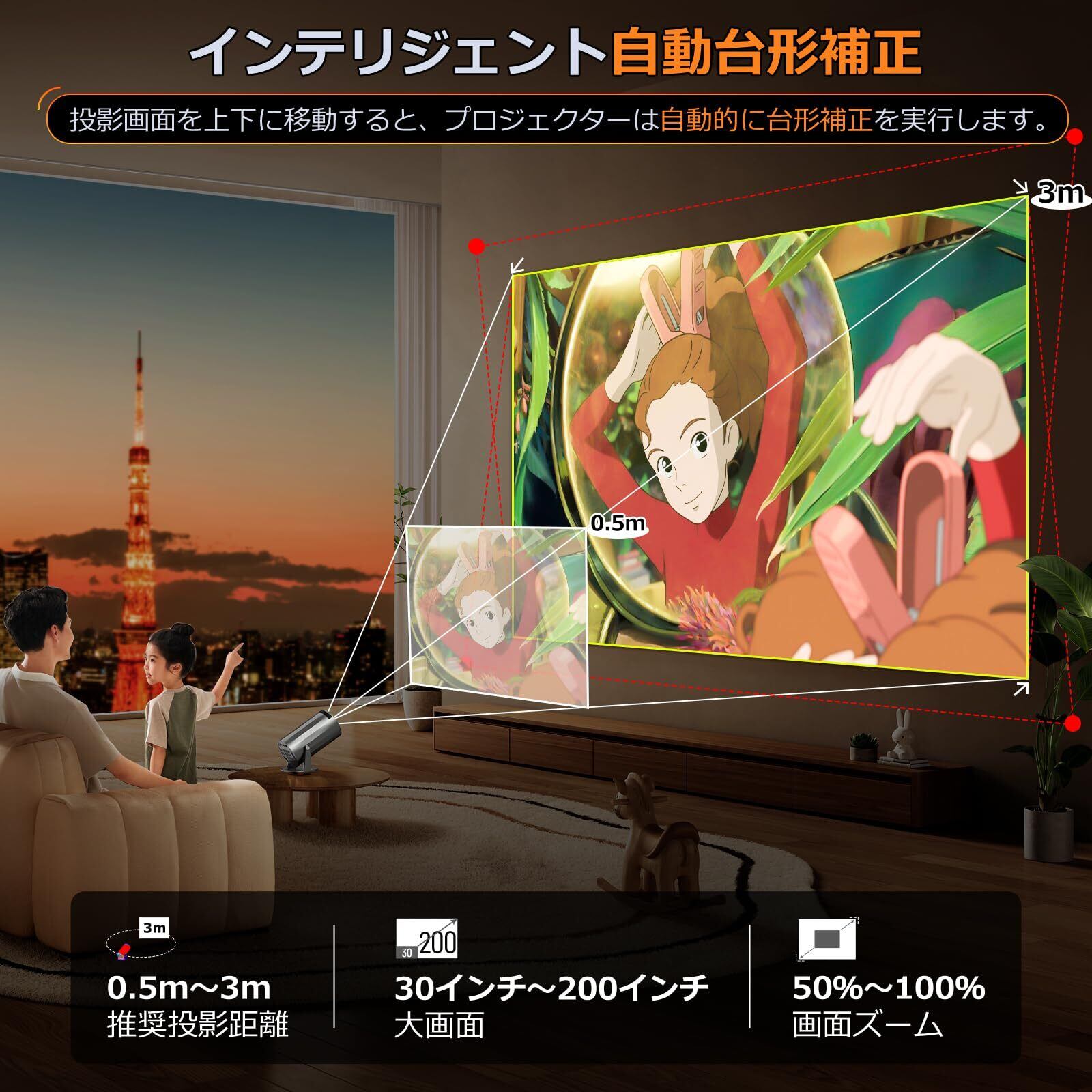 【新着商品】プロジェクター 家庭用【Android TV搭載・18000LM・4K対応・270°回転】プロジェクター 小型 1080P 高輝度 天井投影 Wi-Fi6瞬間接続 Bluetooth5.4 HiFiスピーカー 短距離投影 200inch大画面 自動台形補正 軽量 PSE認証済み スマホ/PC/Switch等多機能接続 日本語取扱説明書 プレゼント