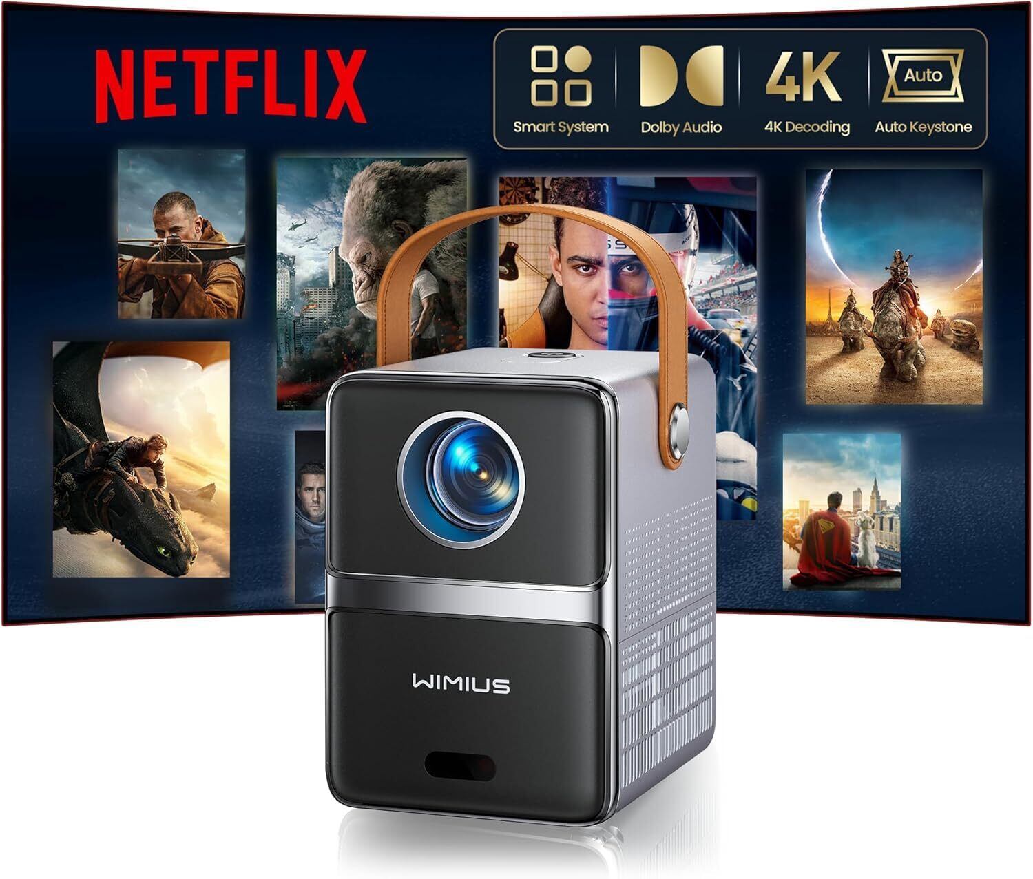【2022最新】プロジェクター 小型 - [Netflix/Dolby対応/自動台形補正/電動フォーカス] 680ANSI 高輝度 WiMiUS モバイルプロジェクター PrimeVideo/Disney+/YouTube内蔵 リアル1080P 4K対応 WiFi6 双方向Bluetooth5.4 Switch/PC/スマホ接続可 プロジェクター 家庭用 P61Pro