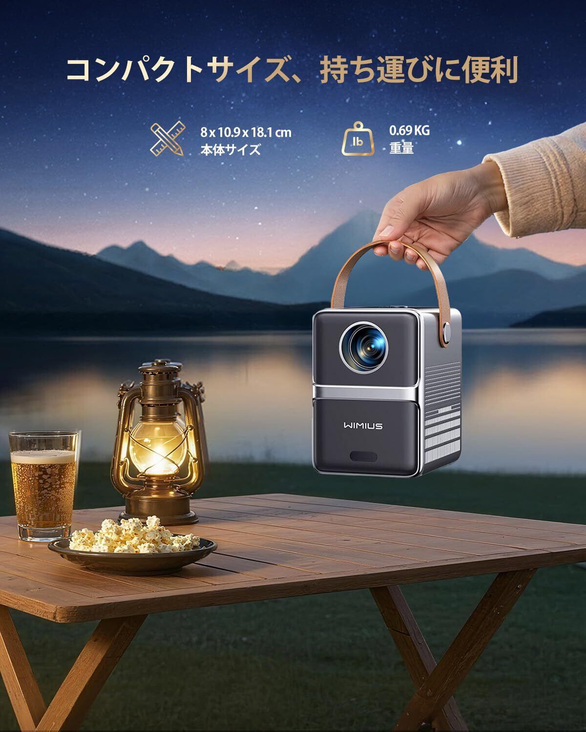 【ネイティブ1080P、4K対応&680ANSI高輝度&小型ポータブル】 WIMIUS P61Pro プロジェクター 4Kは、1920*1080Pのネイティブ解像度と4Kデコード技術により、各ピクセルを鮮明に再現します。680 ANSIルーメンの明るさ、18000:1の超高コントラスト比、96% NTSC色域、60Hz駆動周波数により、特に鮮やかで滑らかな映画鑑賞体験を提供します。P61Pro モバイルプロジェクターは市販のプロジェクター 小型よりもさらにコンパクトで、女性の手のひらサイズです。ポータブルに優れた軽量設計で、お子様でも簡単に持ち運べます。コンパクトなサイズと高輝度画質を両立し、投影画面の鮮明さを完全に保留し、ご自宅で映画館のような映像体験をお楽しみいただけます。