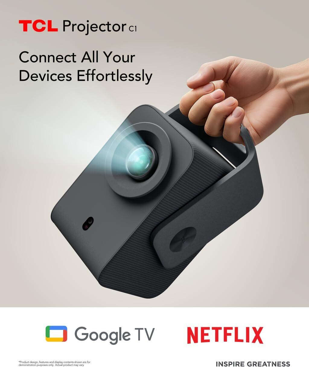 TCL C1 Google TV ポータブルプロジェクター ネイティブ1080P対応 / 内蔵ジンバル搭載/Google TV公式認証/Wi-Fi・Bluetooth対応/完全密閉型光学エンジン/オートフォーカス / 8Wドルビーデジタルオーディオ / 最大120インチ投影 / 天井投影対応