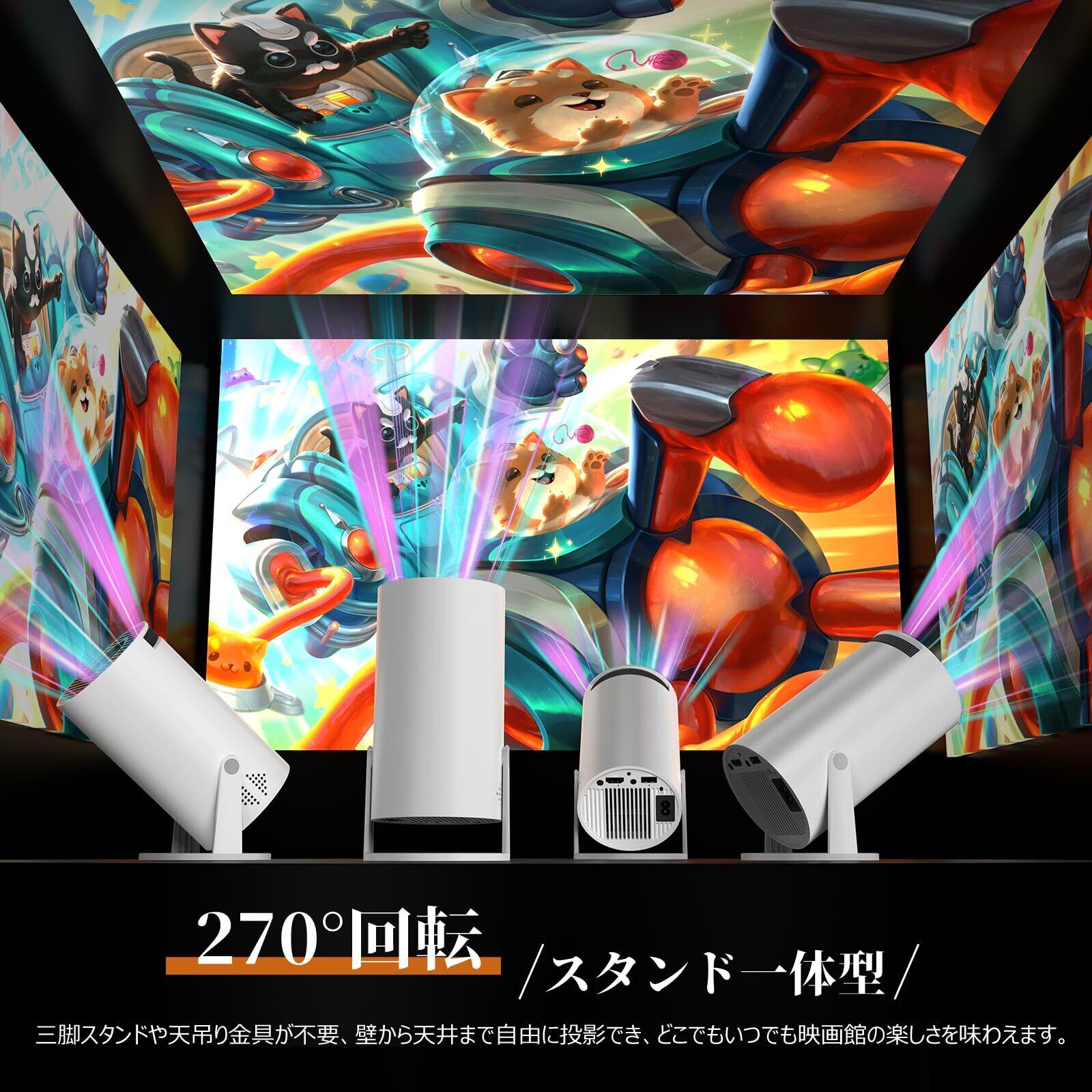 プロジェクター 家庭用【2025年新登場!18000LM・270°回転・4K対応・Android TV搭載】 プロジェクター 小型 高輝度 天井投影 Wi-Fi6瞬間接続 Bluetooth5.4 内蔵HiFiスピーカー リアル1080P 短距離投影 自動台形補正 大画面 スタンド一体型 軽量 スマホ/パソコン/PS機/DVD接続可 プレゼント 日本語取扱説明書