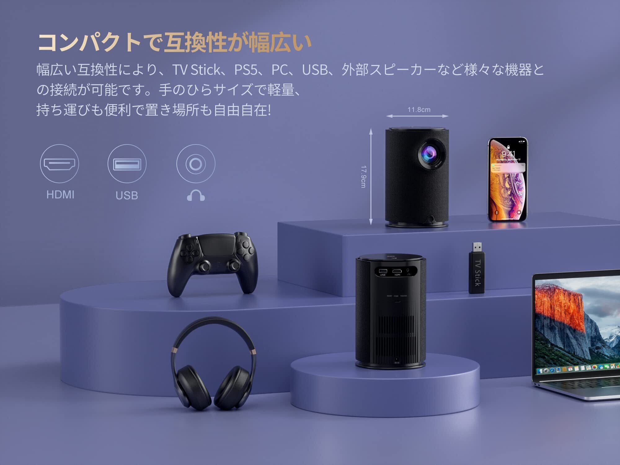⑤【唯一無二の円筒型デザイン|特別な冬の贈り物】 ありきたりな四角いプロジェクターとは一線を画す、個性的で洗練された「円筒型フォルム」。家電を感じさせないその独創的な外観は、インテリアのアクセントになり、箱を開けた瞬間に「おっ!」と驚くサプライズを演出します。他とは被らないセンスの良いギフトとして、自分へのご褒美はもちろん、クリスマスや新年、大切な人へのプレゼントに最適です。