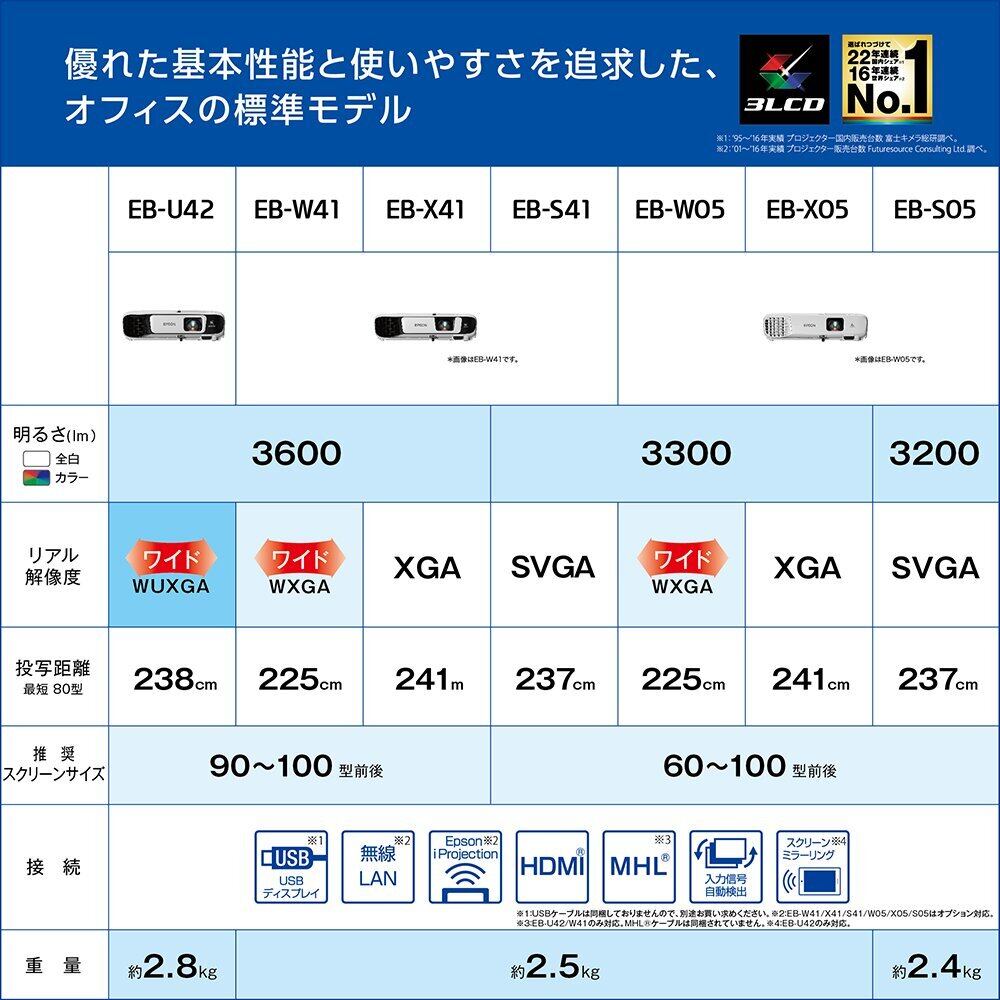 【旧モデル】エプソン ビジネスプロジェクター/液晶/3300lm/WXGA/2.5kg EB-W05