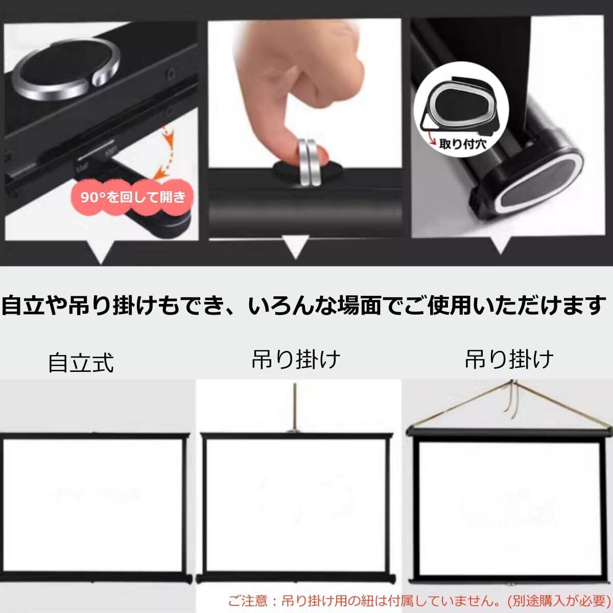 【高さ・傾き微調節可能】裏面の上ストッパーでポールを調節でき、下ストッパーでスクリーンの位置を調節でき、利便性が高いです。吊り下げバーは、たわみ強度のあるアルミ合金を採用し、温度差による経常変形が少なく、スクリーンの平面性を保ちます