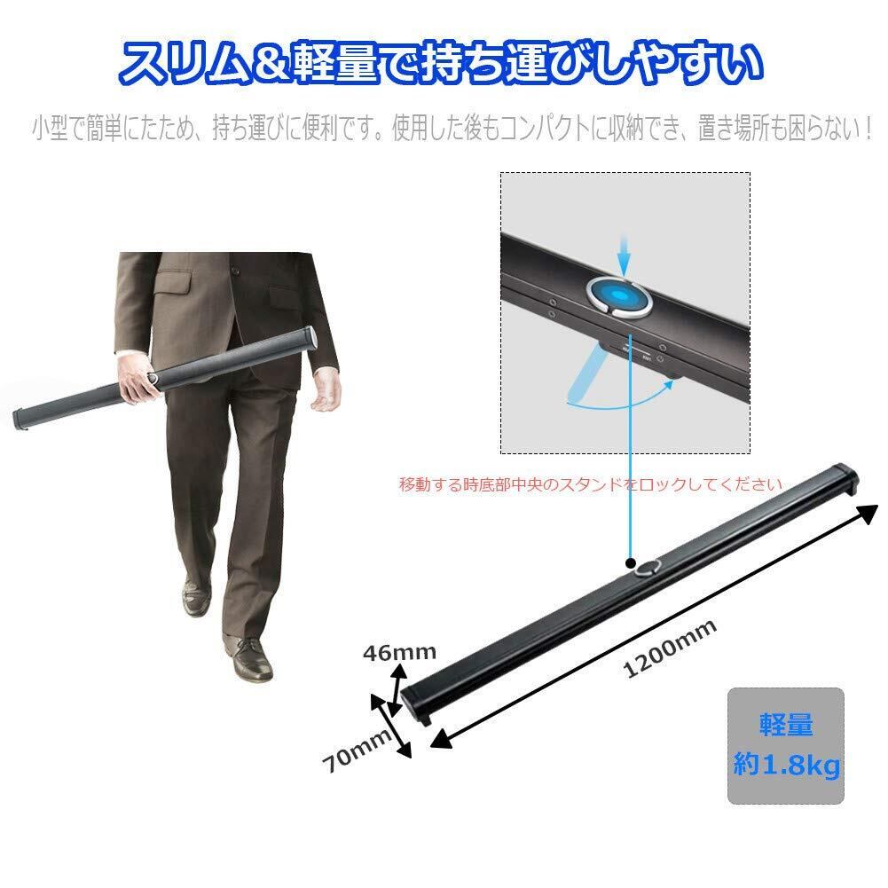 【持ち運び便利】サイズ:50インチ、正味重量:1.8kg、軽量でコンパクトに仕上がります。ご利用しないときはスリムに納められ、持ち運びや収納に便利です。会議室、学校、ホームシアターなど幅広く活用でき、プレゼントとしてもおすすめします