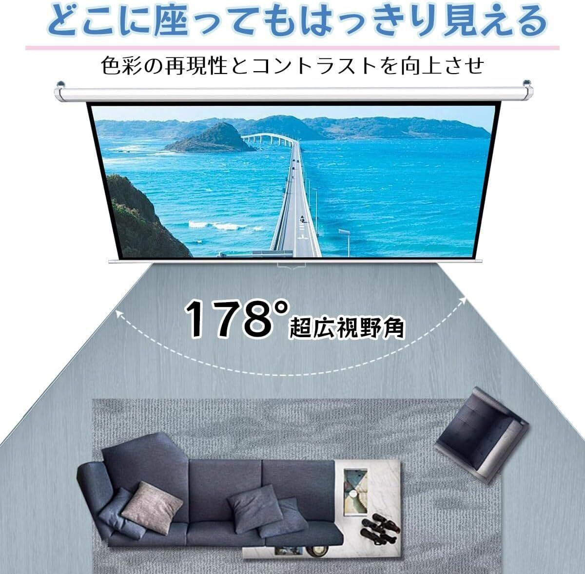 【使い勝手抜群】60インチ(16:9)サイズのプロジェクタースクリーンです。178°の広視野角を持つこのスクリーンは、大人数での視聴でも、全員が最高の視聴体験を楽しめます。使う時にスクリーンを手動で下に引くだけでいいです。使わない時は巻き上げてスクリーンを簡単に収納できます。