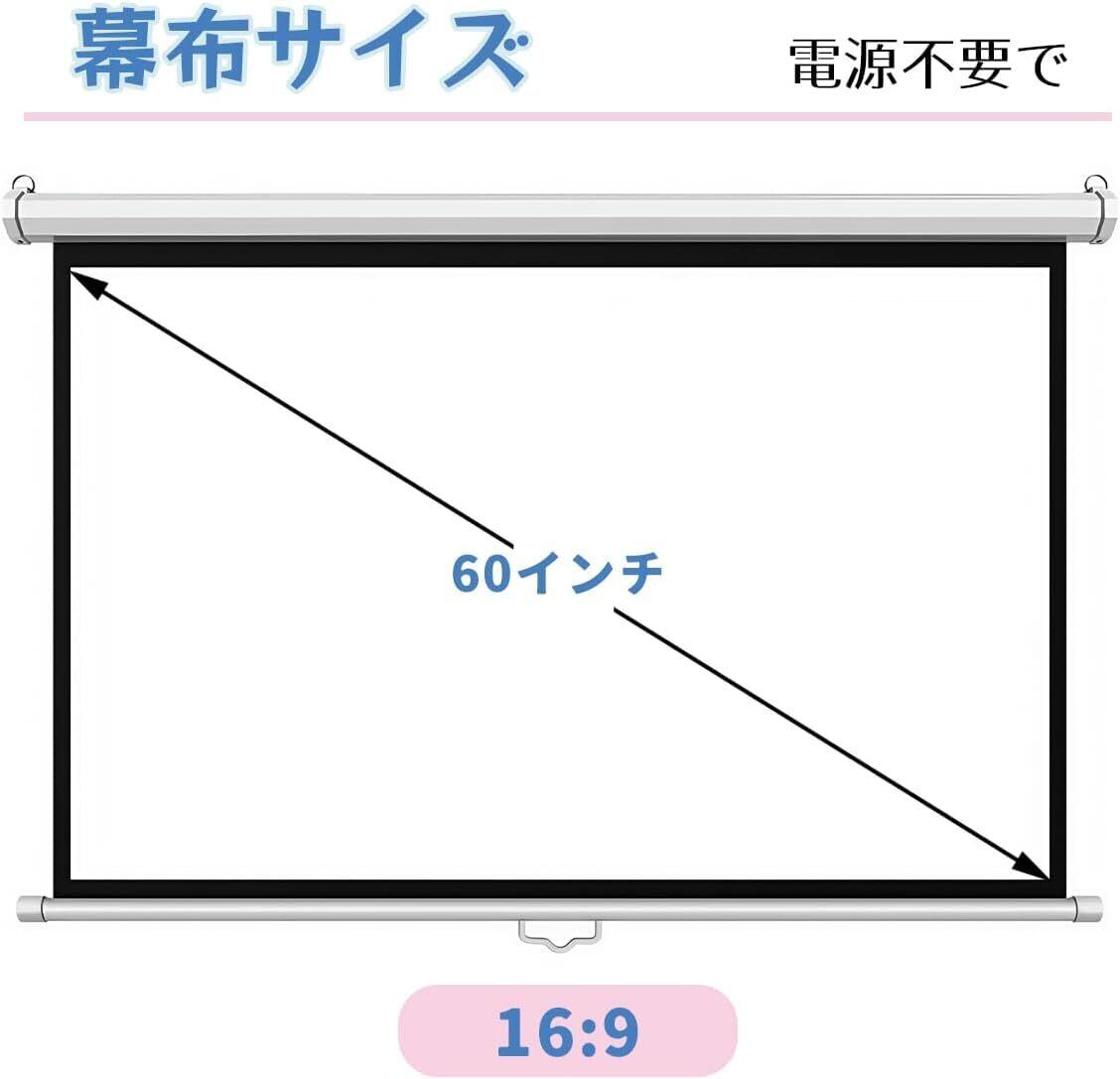 【2022最新】プロジェクタースクリーン 60インチ 16:9 視野角178° ぷろじえくたー 家庭用 スクリーン 4K HD 吊り下げ 天井 壁掛け ロール式 手動自動ロック 大型 軽便 しわになりにくい 多用途 簡単設置 電源不要 ホームシアター 会議室 業務用(ホワイト,133*75.5cm)