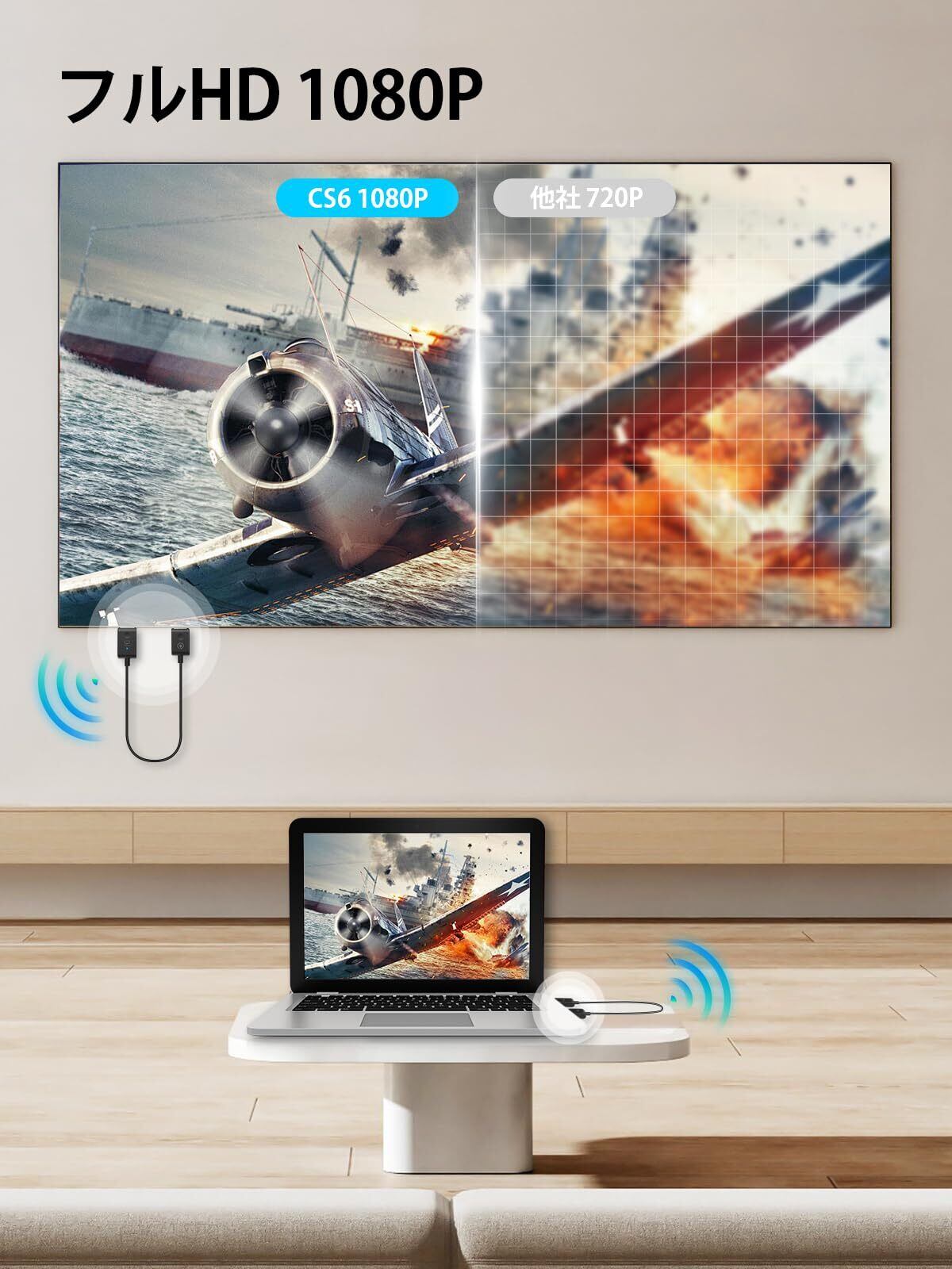 【在庫セール】Moman ワイヤレス HDMI 送受信機 セット, CS6 1080P 無線hdmi 50M使用距離 2.4G/5G WIFI&設定不要 プロジェクター/モニター/PC/DV/ラップトップに適用, HDMI-ワイヤレス-トランスミッター-レシーバー-1080P